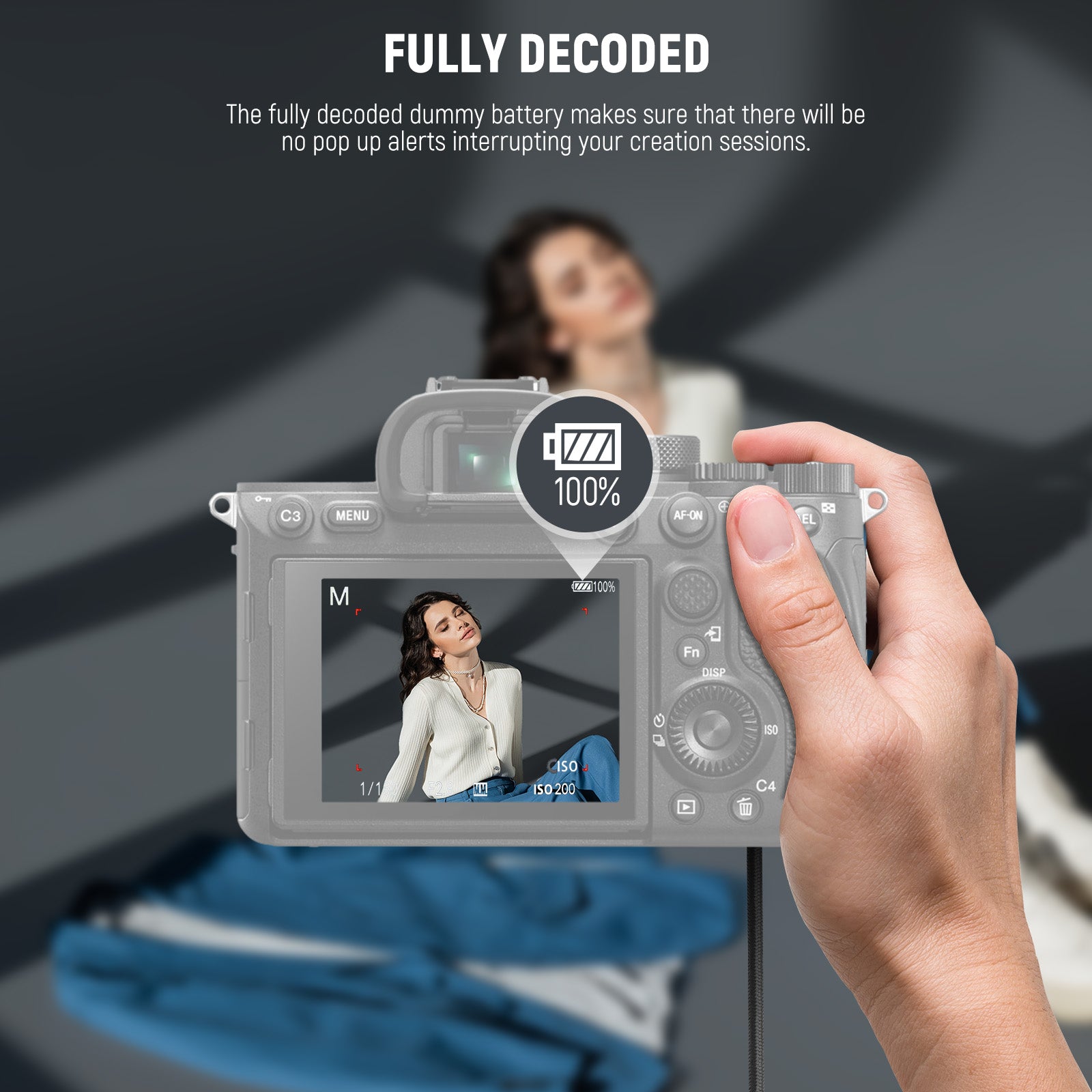 - Extended & Continuous Shooting- Compared to the original battery with limited runtime, this NP-FZ100 dummy battery delivers consistent power from USB C sources, ensuring extended recording sessions without interruptions. Simply insert the dummy battery into your camera, connect the USB C end to a power source, and you're ready to go