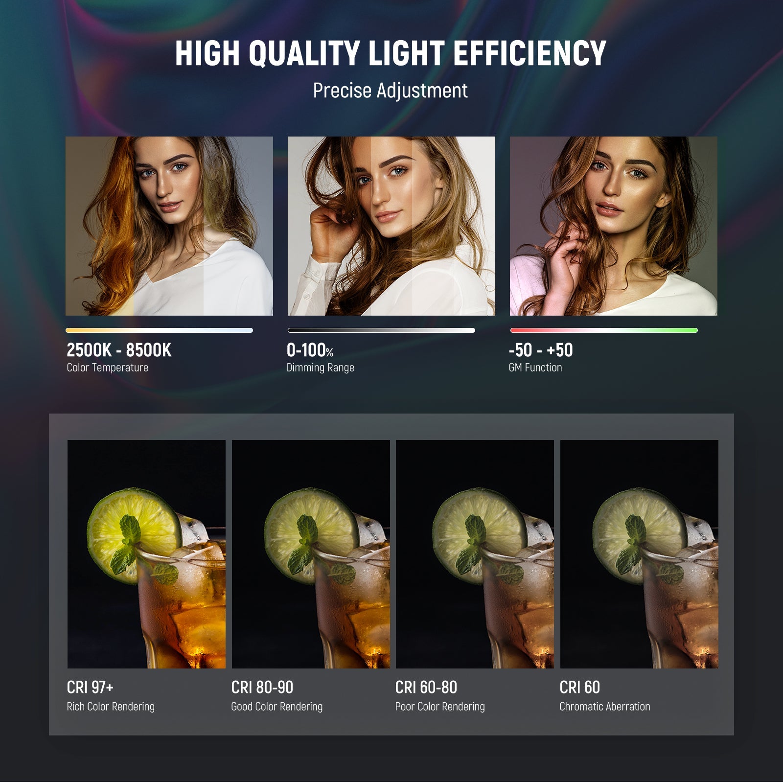 - Upgraded with APP Wireless Control- The "NEEWER" app lets you wirelessly operate this RGB video light from up to 164’/50m away and take advantage of all the functions. Within the app, you can change brightness, color temperature, hue, and saturation, select scenes, and save multiple presets for future use. An RGB color wheel lets you pick any color with one tap. OTA firmware upgrade supported