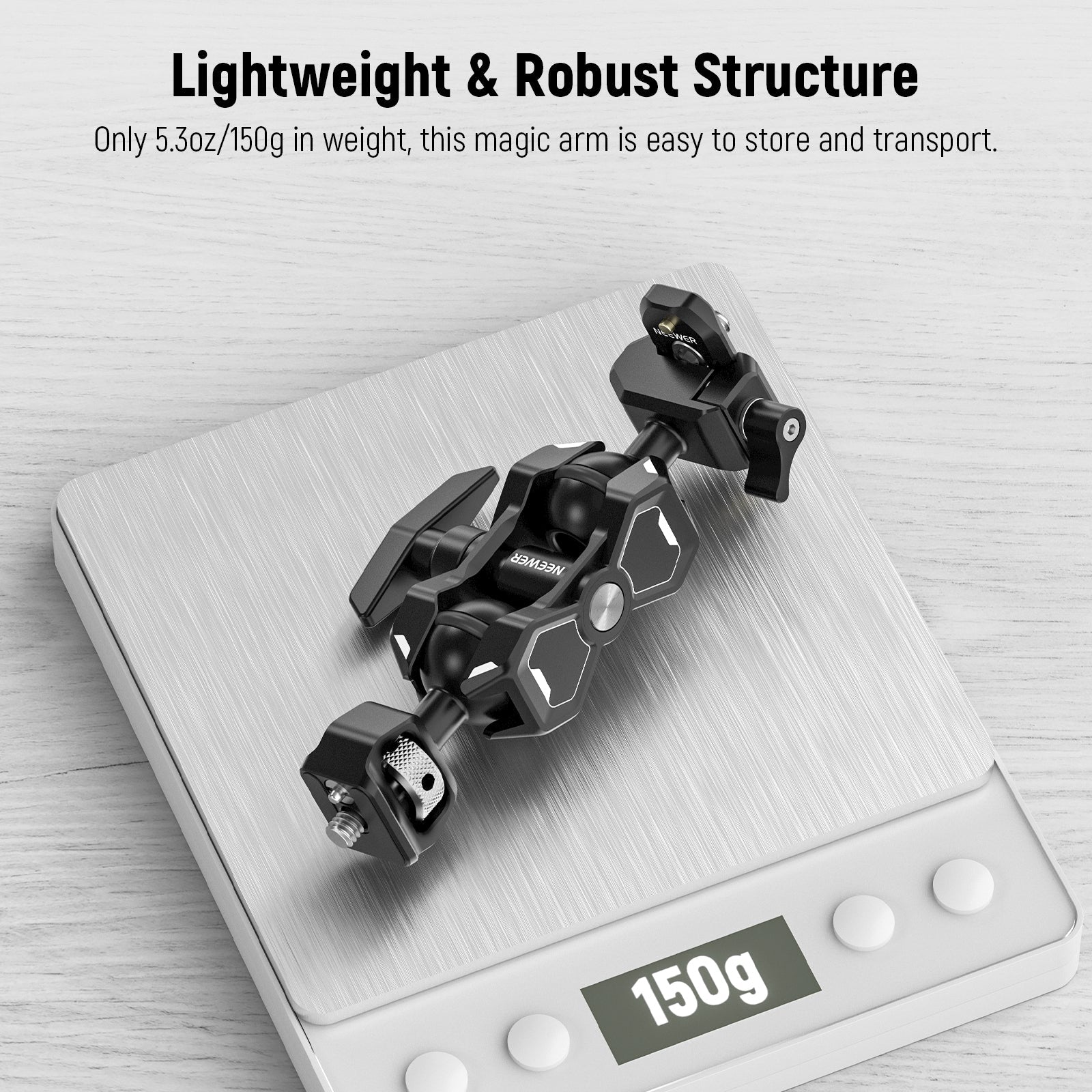 - Lightweight & Robust Structure- Only 5.3oz (150g) in weight, this magic arm is easy to store and transport — ideal for outdoor photography, filmmaking, and vlogging. The solid aluminum alloy construction withstands scratches, corrosion, and shocks