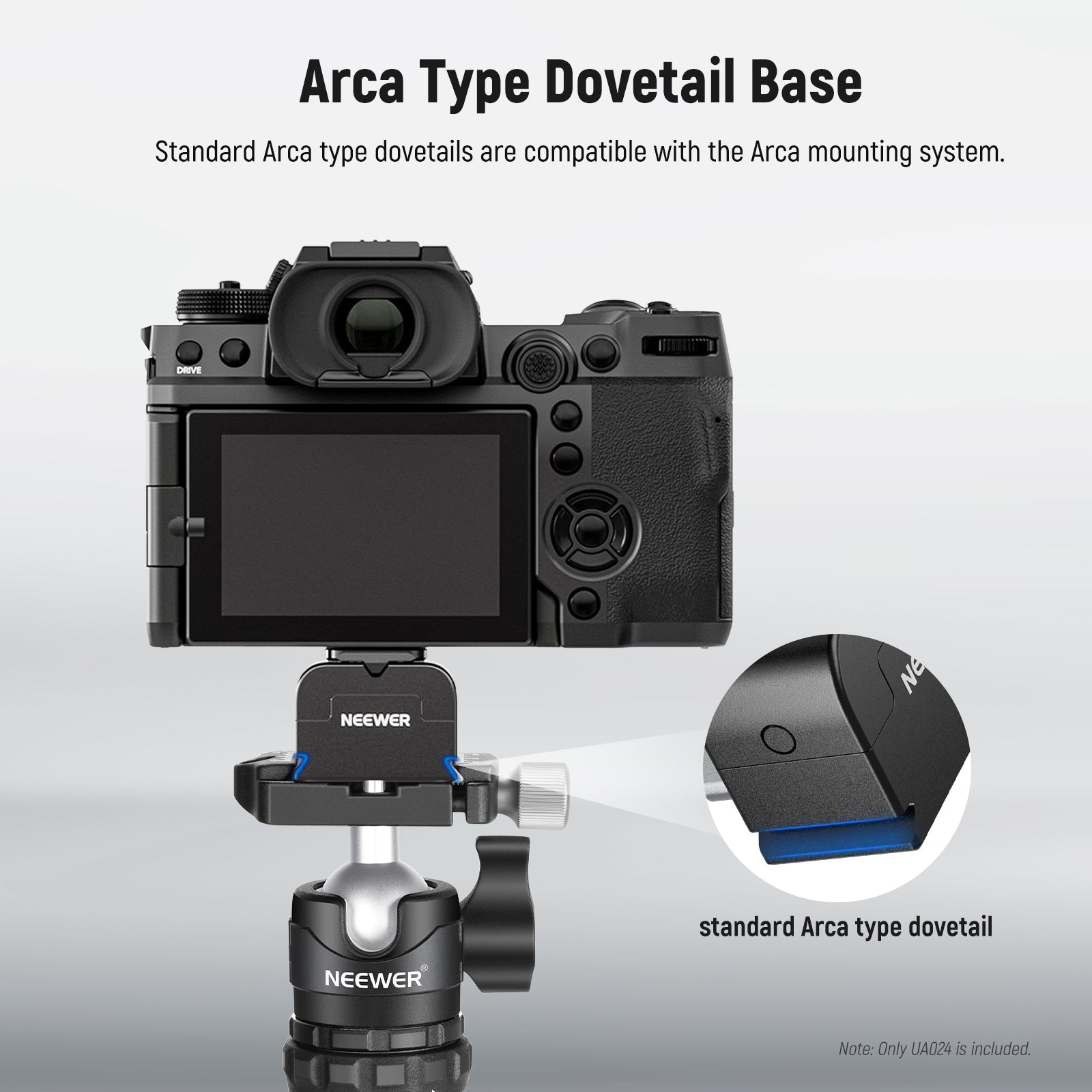 - Arca Type Dovetail Base- With standard Arca type dovetail, the base can attach to any tripod head, video head, camera slider, and stabilizer compatible with the Arca mounting system