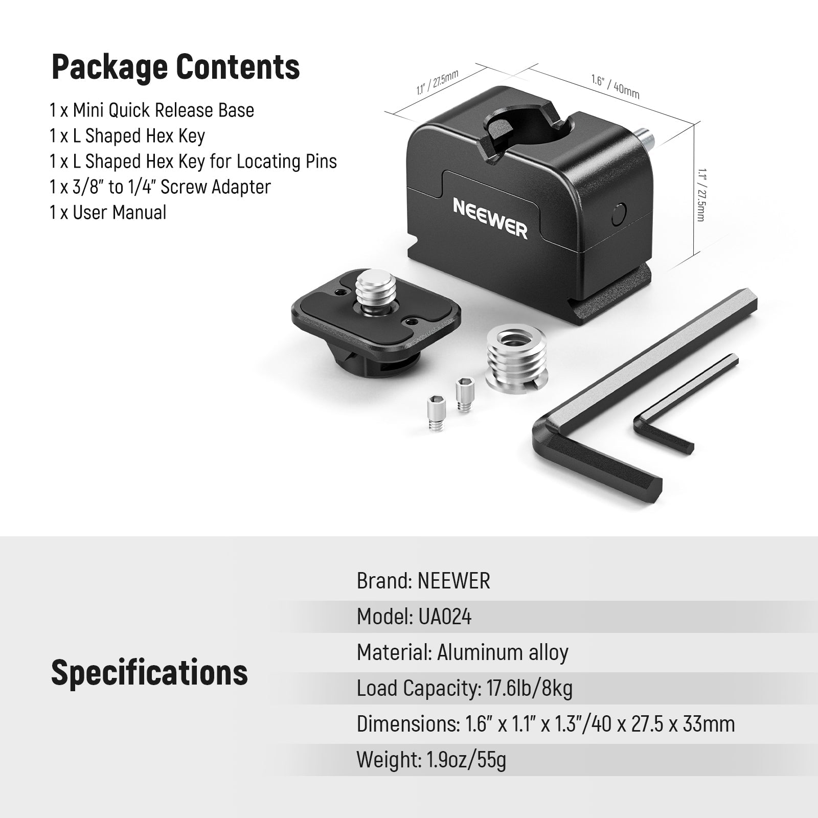 - 1 x Mini Quick Release Base