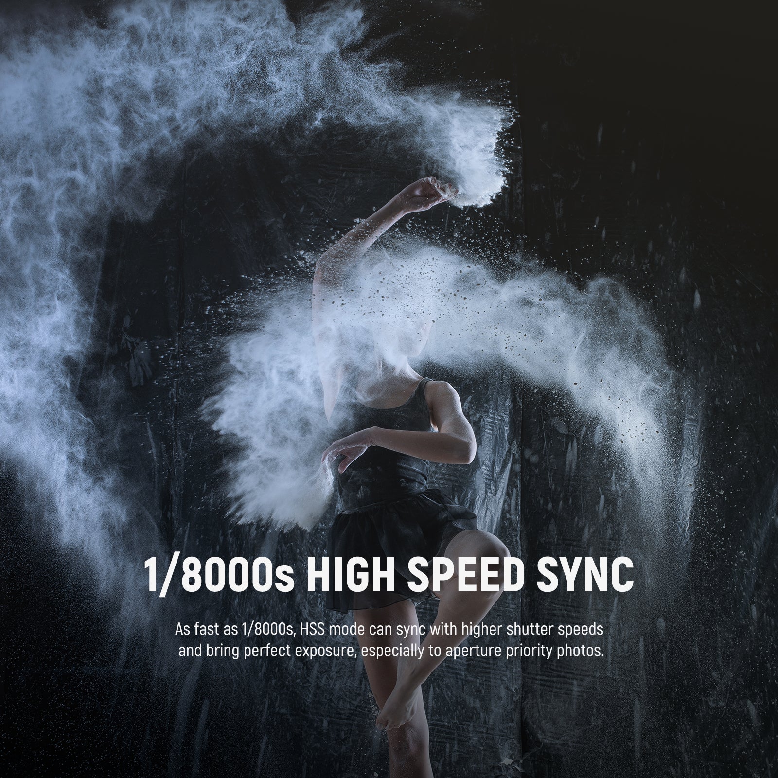 - Sync Method: High speed sync (HSS, up to 1/8000s), front curtain, rear curtain