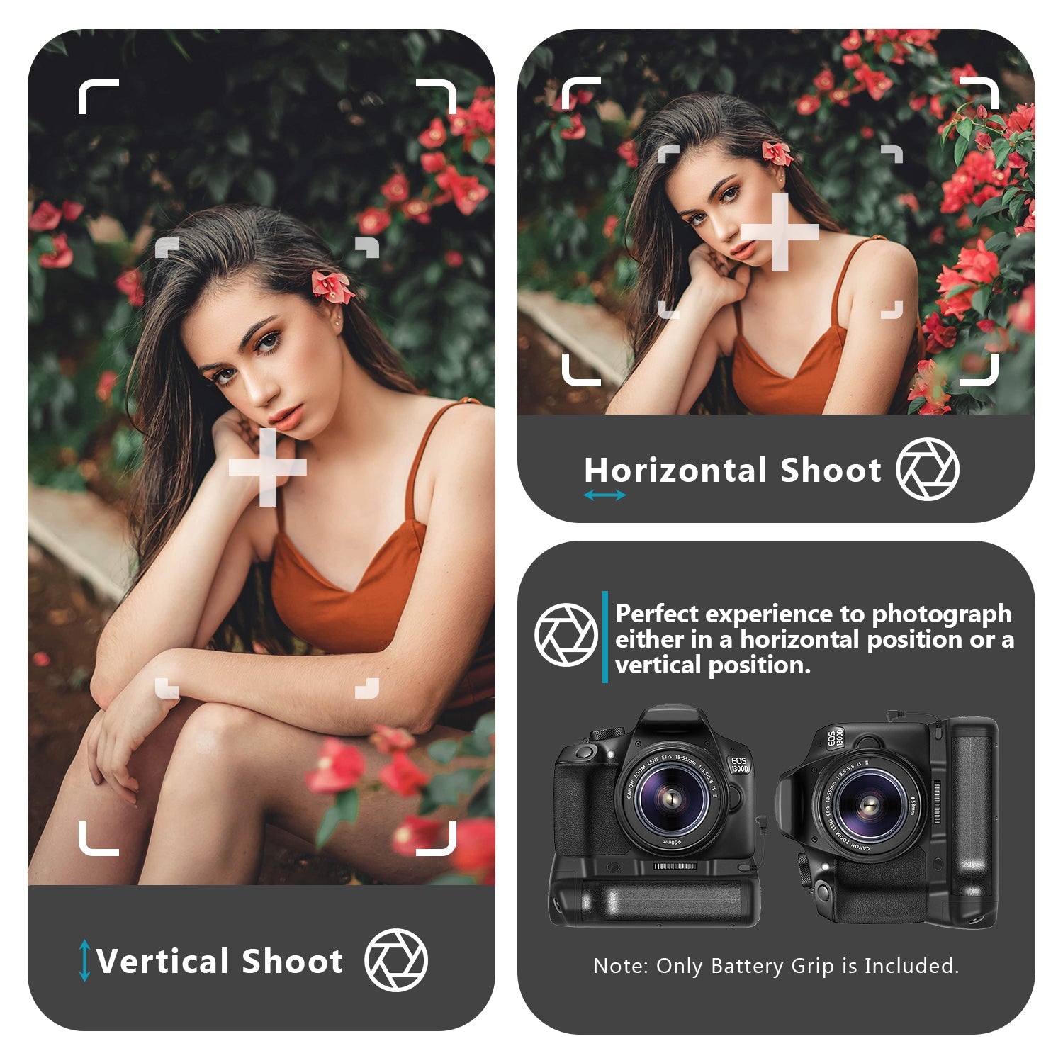 - Brand new pro battery grip for Canon EOS 1100D / 1200D / 1300D Rebel T3 / T5 / T6