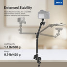 - Magic Arm with Super Clamp- Made of aluminum alloy, the podcast mic boom arm phone stand for desk supports DSLRs, action cameras, smartphones, or microphones up to 1.1lb/ 500g, with an anti twist pin for stability. Recommended for use in static situations