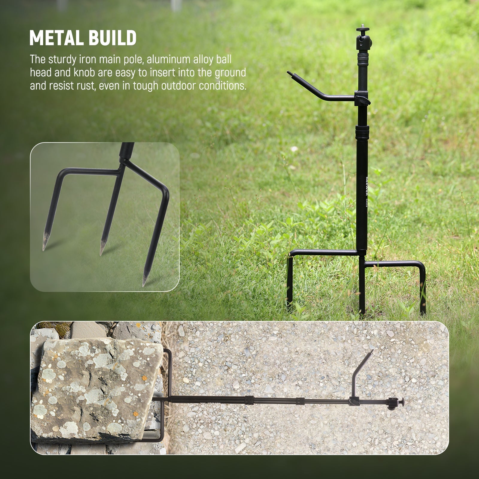 - Metal Build- The game camera mount boasts a robust iron main pole and aluminum alloy ball head and knob, resisting rust in harsh outdoor conditions. Its all black design allows for discreet concealment, minimizing disruption during filming