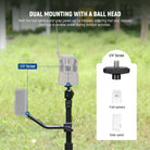 - 360° Ball Head & Height Adjustable- The trail camera stand features a 360° ball head on the main pole, allowing for 360 degree rotation and a 90 degree tilt. Use one or two connecting rods on the main pole to adjust its height to 27.6"/70 cm or 51.2"/130 cm. Elevating the camera off the ground reduces obstructions like tall grass or brush, enhancing the field of view and increasing the chances of capturing clear images or videos