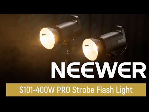 - 400Ws Monolight & 150W Modeling Lamp- NEEWER strobe light photography S101-400W PRO Studio Monolight has 400Ws high power output, GN65 guide number (1m, ISO100), an upgraded 150W LED modeling lamp (2600K), and 10%-100% brightness levels, suitable for commercial, portrait, wedding, and still life photography. 1/100-1/1000s duration time and 0.1-2.4s recycling time is perfect for capturing moving subjects and continuous shooting