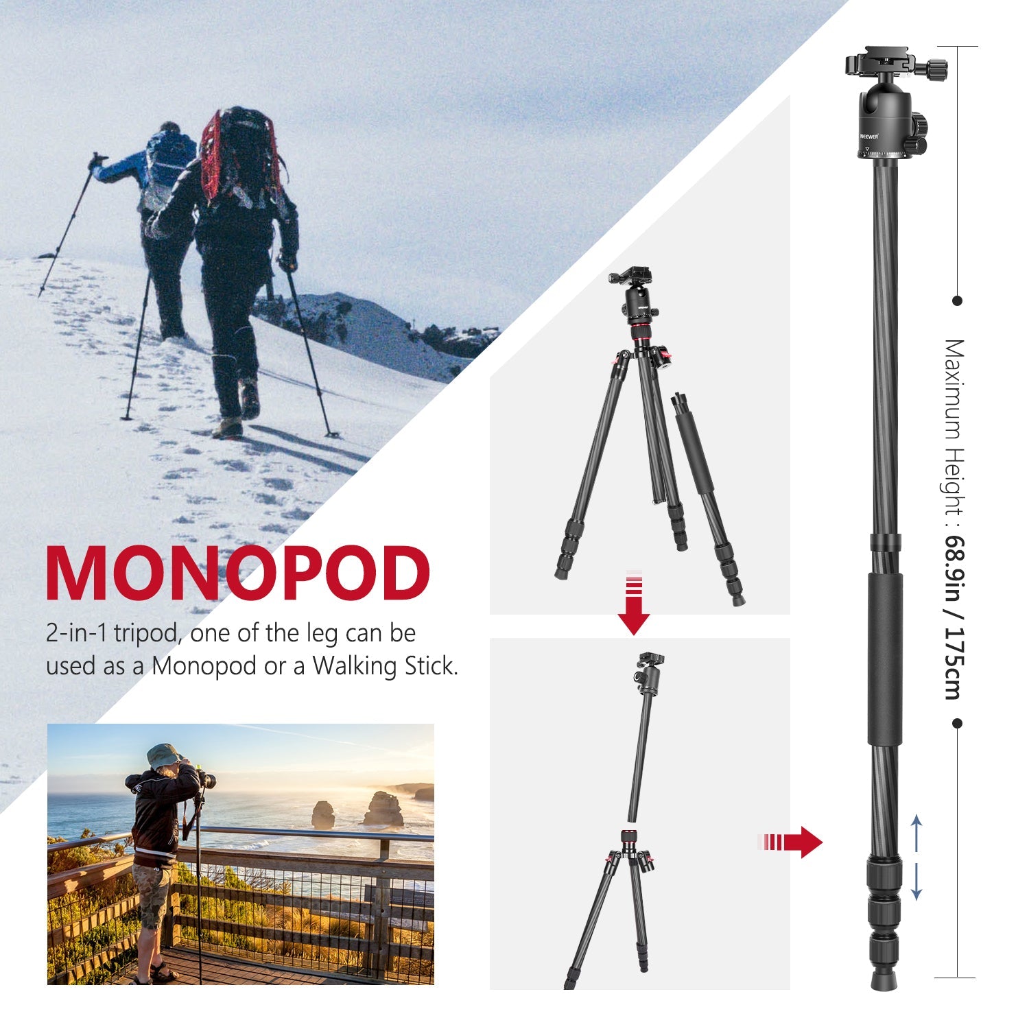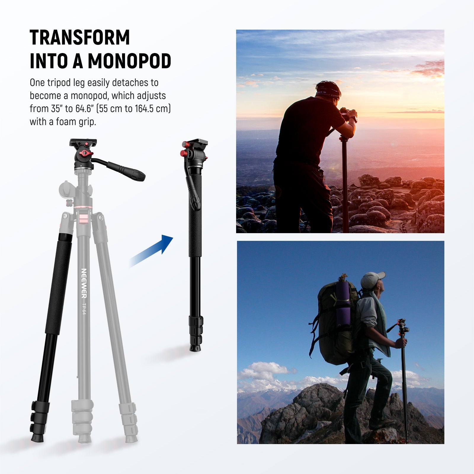 NEEWER video tripods, travel tripods, and 2-in-1 monopod tripods — designed to suit all your photography and filming needs.