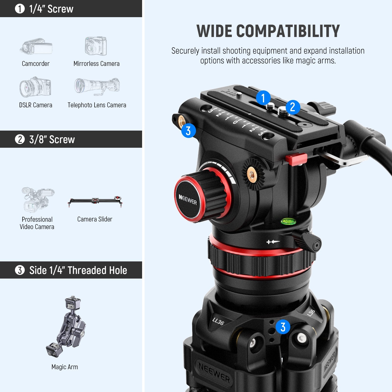 NEEWER offers a range of tripods for cameras, phones, telescopes, and more. These lightweight yet durable tripods provide exceptional stability and are built to withstand rigorous use. Perfect for professional photography, selfies, filming, video recording, and more, choose a high-quality camera tripod to enhance your photography and videography.