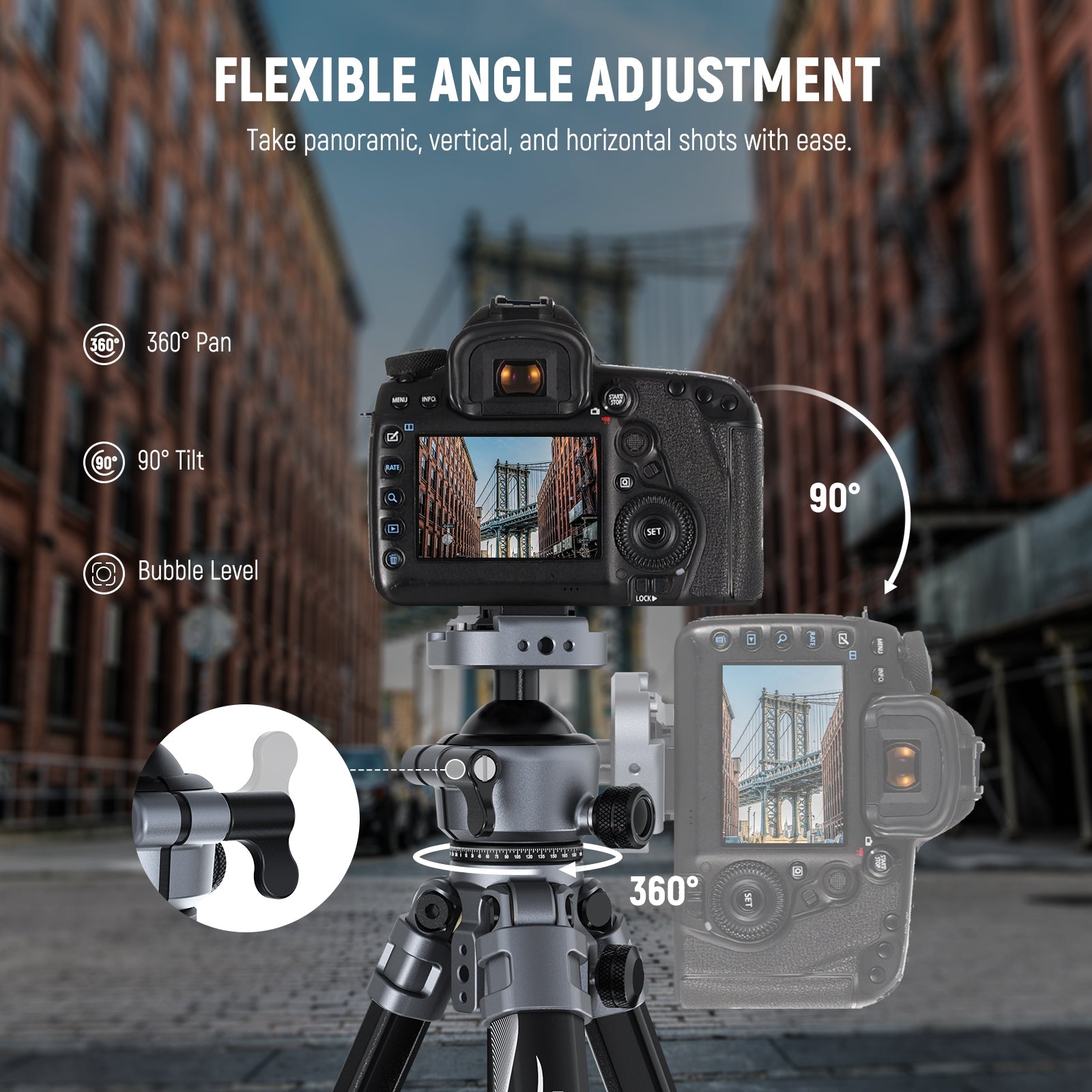 - Detachable Low Profile Panoramic Ball Head- Enhanced stability with a lower center of gravity, φ40mm scaled pan base, and U shaped groove for smooth panoramas and 90° vertical shots. It is detachable for mounting on other tripod stands, monopods, and sliders via a 3/8" thread. A 1/4" thread on the QR clamp enables more flexible accessory mounting