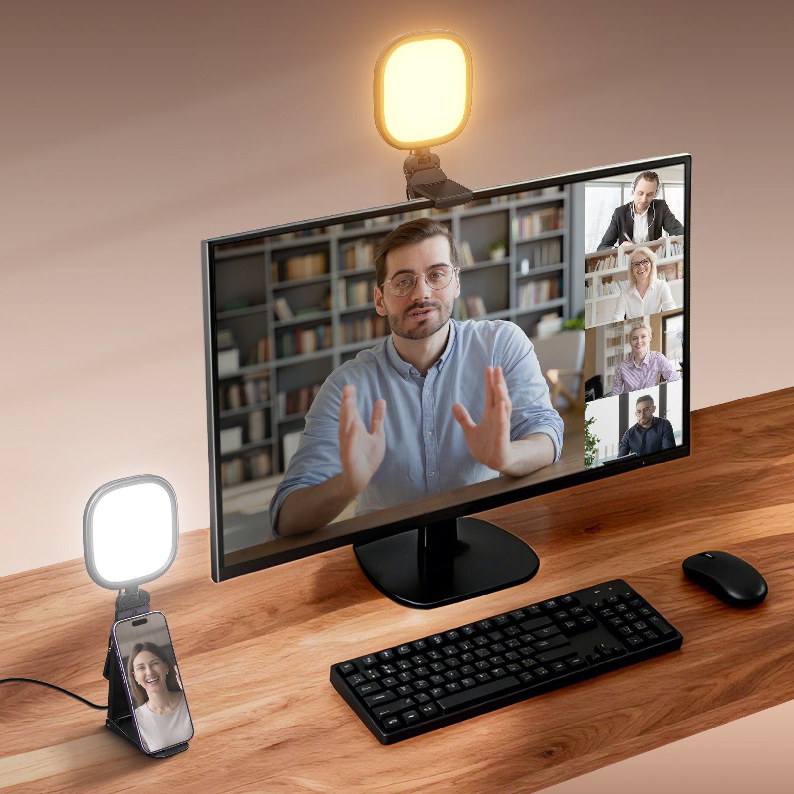 - Versatile Full Screen Light- Mount the small LED panel influencer light with stand directly onto a monitor, curved monitor, laptop, computer screen or place it on the desktop as desk setup accessories. Attach to a webcam via the 1/4" threaded hole. Portable lighting for TikTok YouTube recording, podcast, video conferencing, Zoom meeting/call, gaming streaming, online teaching, selfie, makeup artist filming, reading book, etc. Power it via a USB port with the 6.3'/193cm integrated power cable