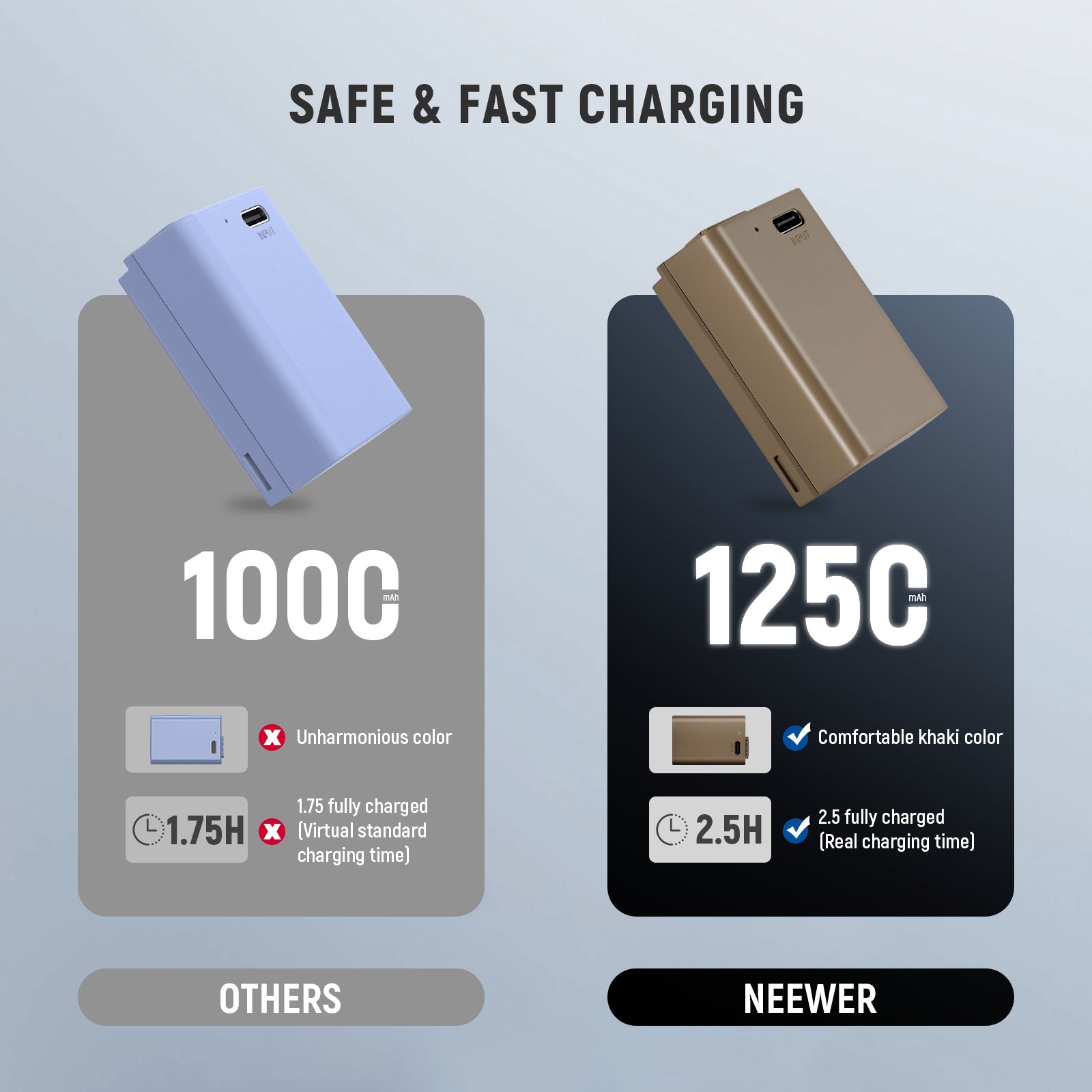 - Safe & Fast Battery Charging- Safely charge this 1250mAh battery to 100% in 2.5 hours using a 5V 2A USB wall charger (not included). Note: PD fast charging is not supported