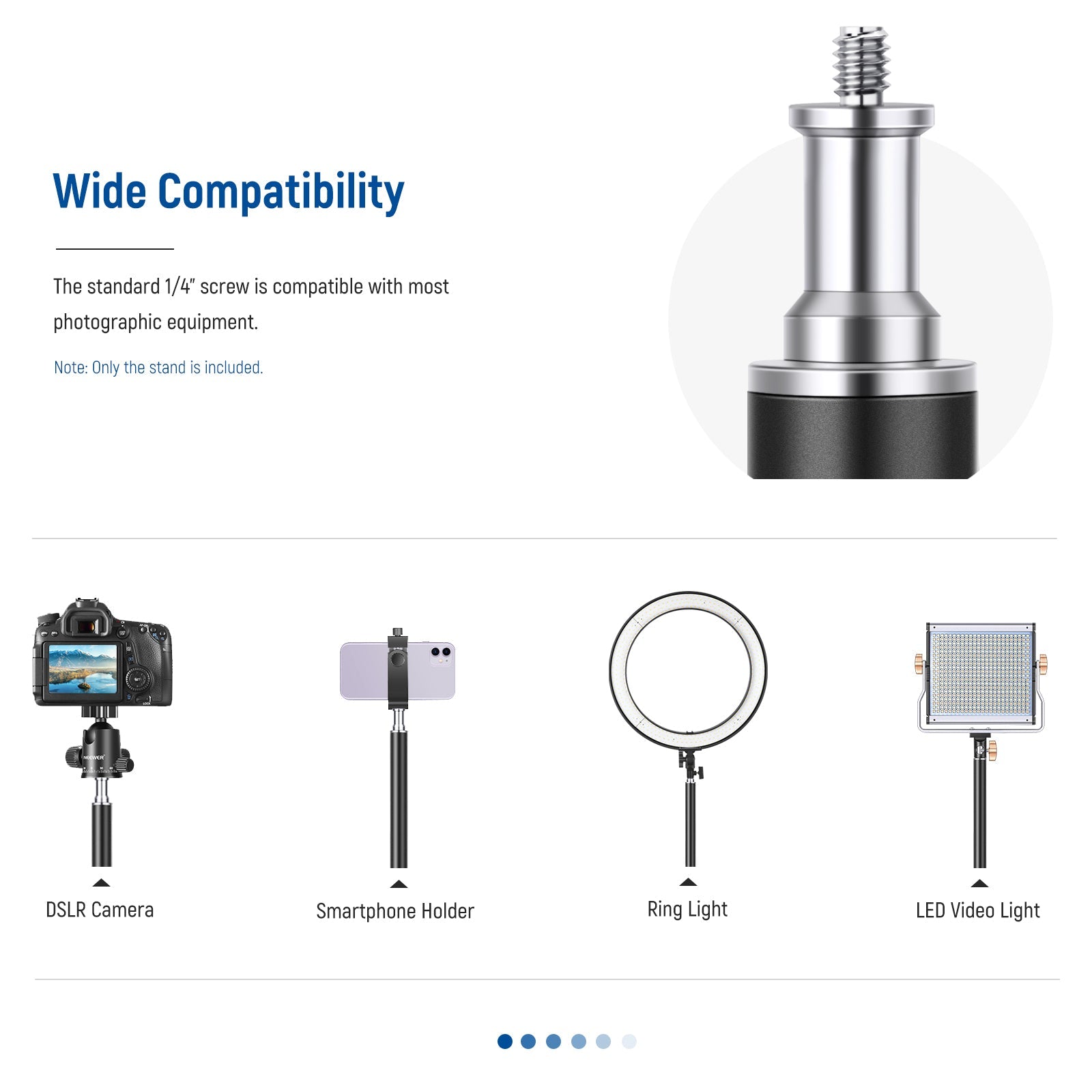 - Adjustable with Locking Knob- Adjust the stand height from 13.78”/35cm to 23.62”/60cm. The mini ball head ensures 360° horizontal rotation for panoramic photos and tilting from -90° to 90°. Use the ball joint locking knob to loosen the ball joint and adjust to the desired angle to meet your needs