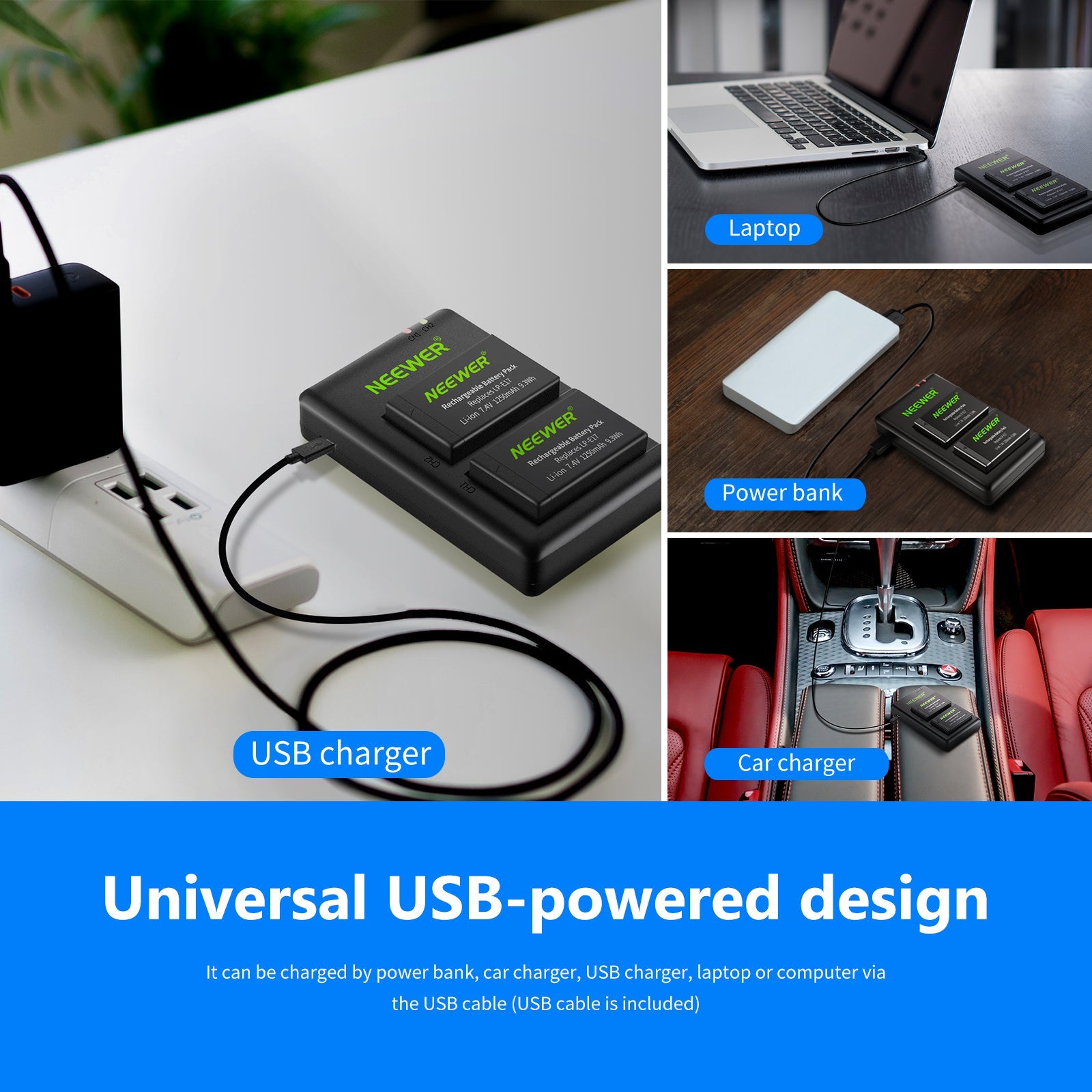 - DUAL USB CHARGING: Charges two batteries simultaneously; Easy to carry when out or travel; Can Charges up to two batteries at once and quick charge with automatic constant current control prevents battery from overcharging, short circuit, and electronic shock
