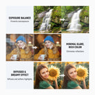 - Flexible Exposure Balance- Reduces light by 1-5 stops (ND2-32) to prevent overexposure in varying light conditions and allows you to capture waterfalls, rivers, and light trails with motion blur. Rotate the frame to the marks for the desired effect