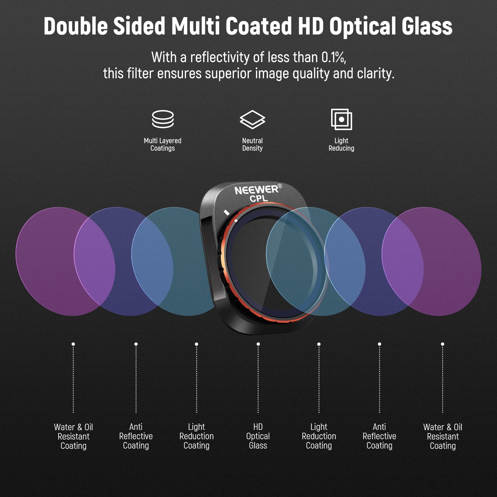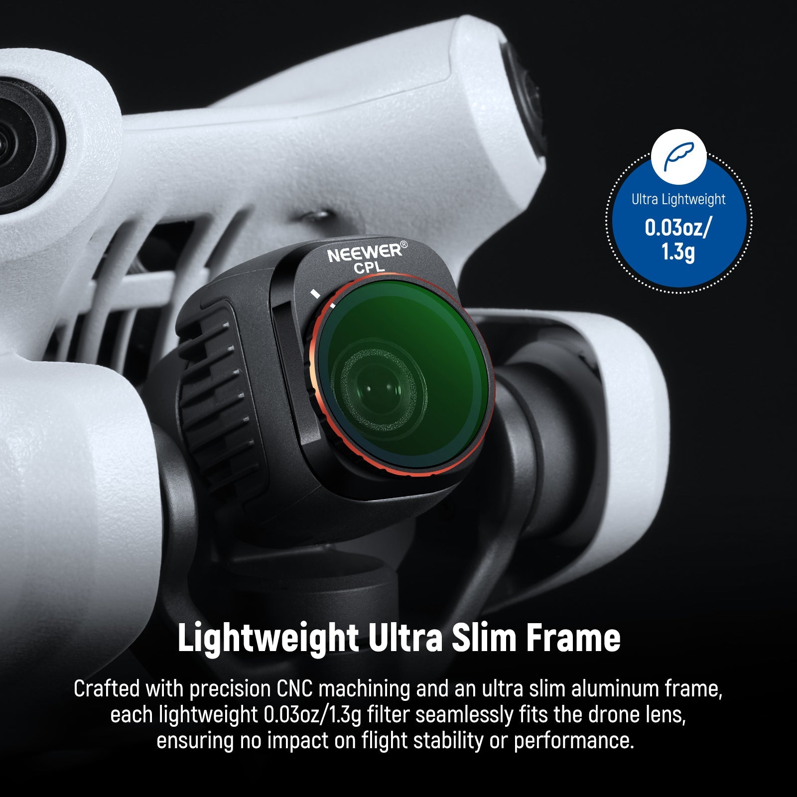 - Dedicated to Mini 4 Pro- Introducing the latest must-have ND & CPL filter set, compatible with DJI Mini 4 Pro. This NEEWER filter kit boasts top notch HD glass that ensure crystal clear imaging during aerial shooting. It's a game changer for drone enthusiasts looking to optimize shutter speeds, minimize glare, enrich colors, and achieve impeccable exposure in varying weather conditions