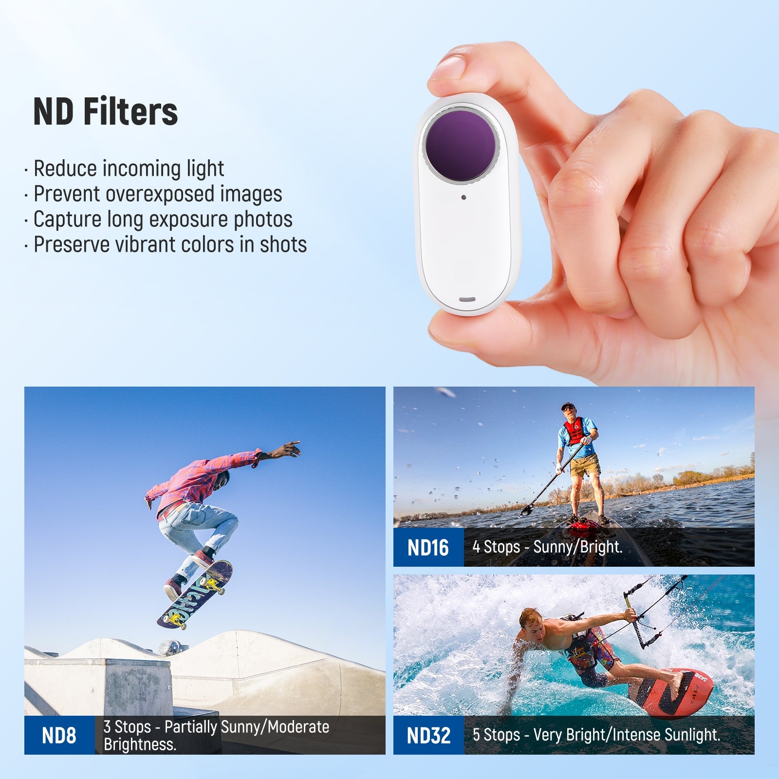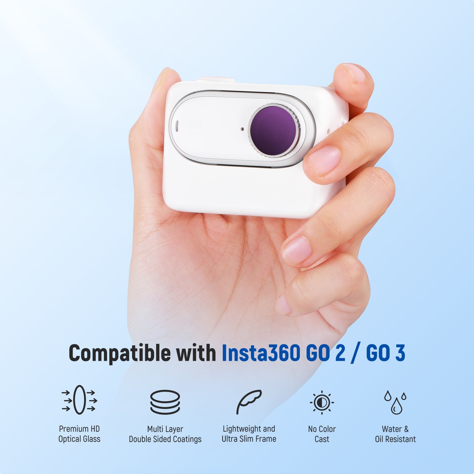 - Fully Compatible with Insta360 GO 2/GO 3- Specifically designed for the latest GO 2 and GO 3 action cameras. Includes 1x CPL, filter, and 3x ND filters (ND8/ND16/ND32), and also a cleaning cloth and filter case for efficient storage and protection