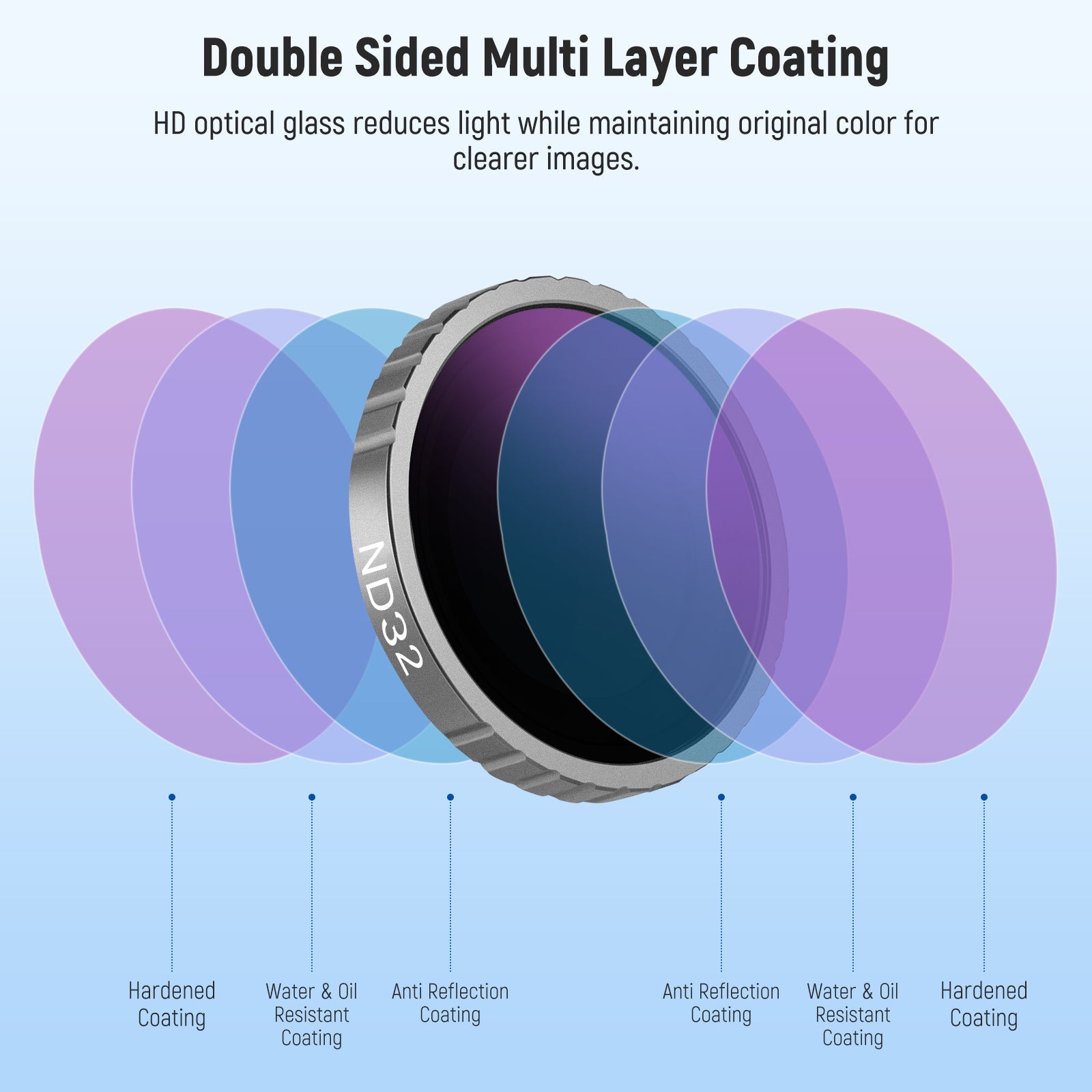 - Multi NANO Coated HD Optical Glass- Made of imported HD optical glass with 30 layers of NANO coatings on both sides, these filters are effectively protected against water, dust, oil, fingerprint, scratches, and reduce the reflection coming from the filter itself