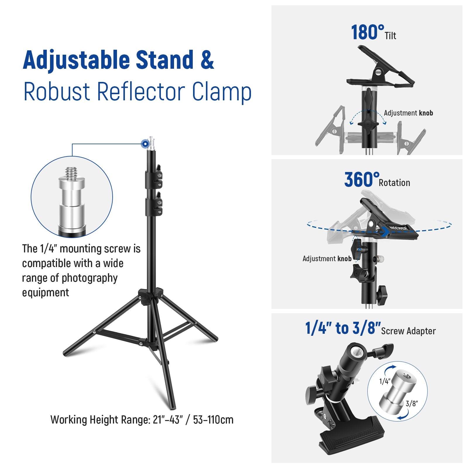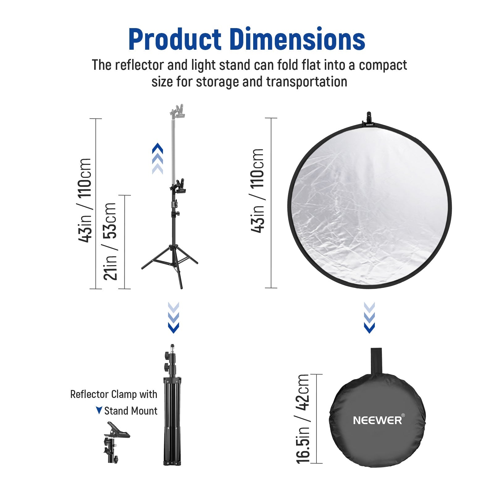 NEEWER 43”/110cm Collapsible Light Reflector with Clamp & Stand