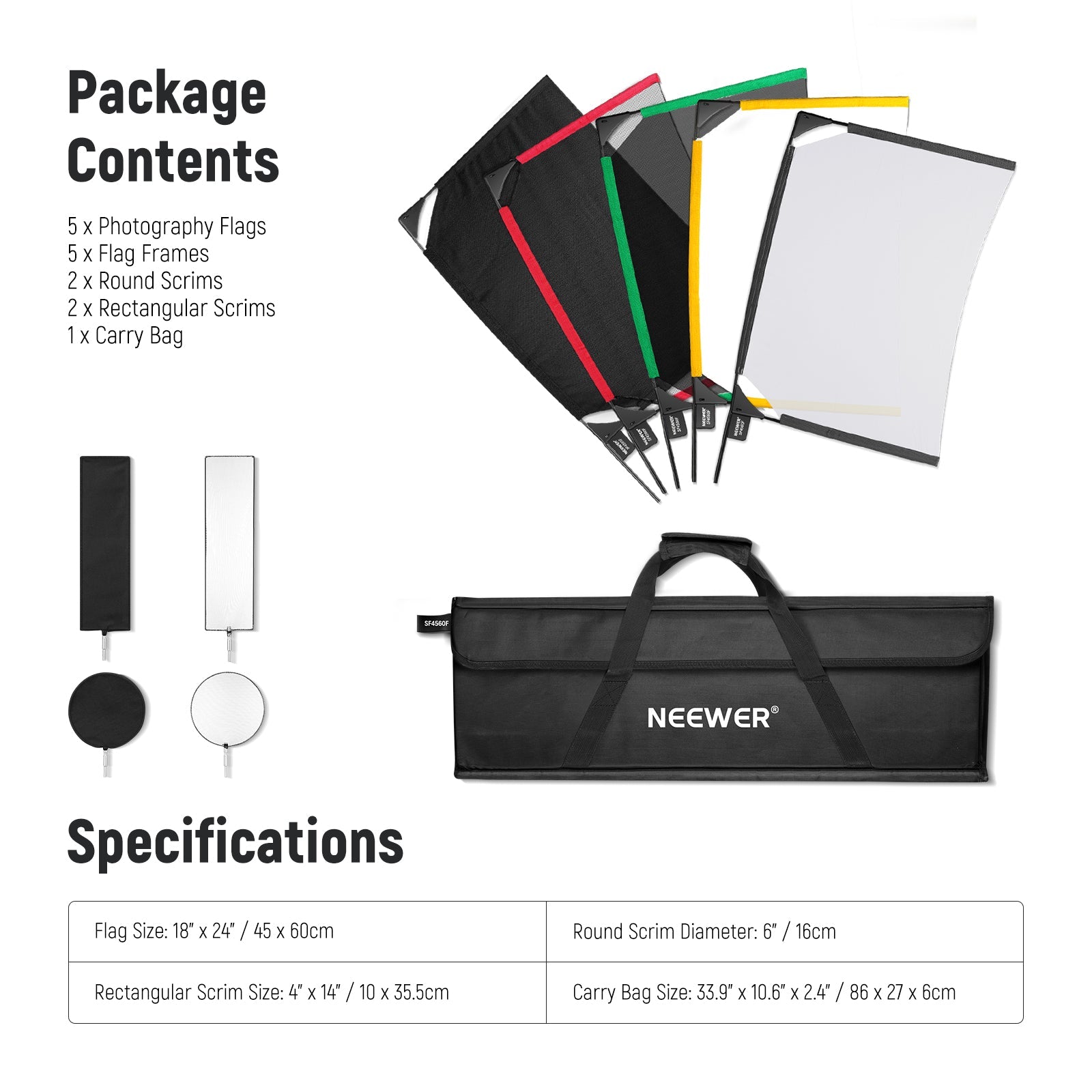 NEEWER 5 in 1 Photography Foldable Scrim Flag Kit with Bag