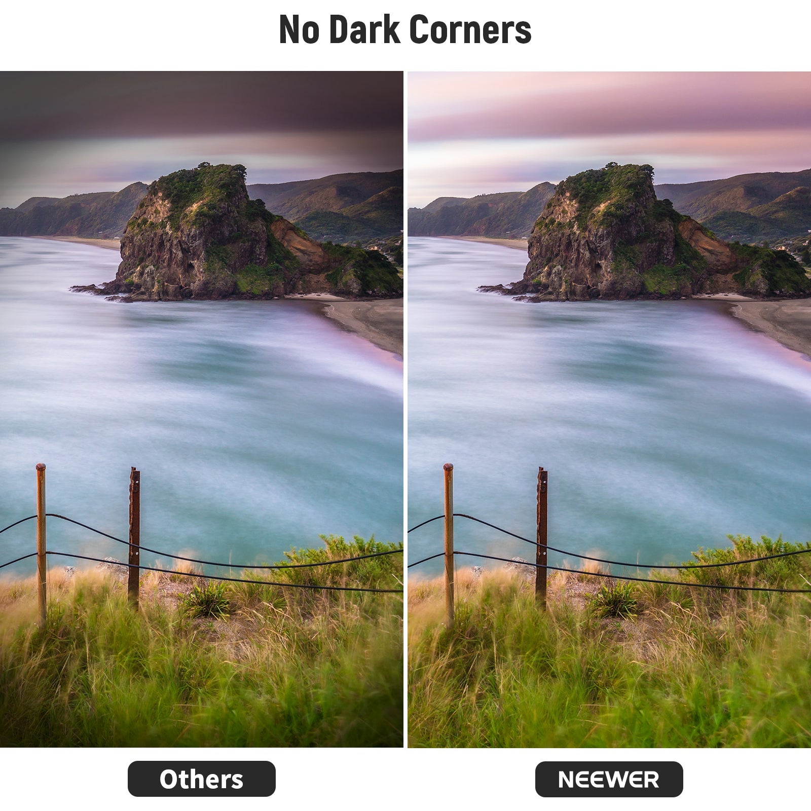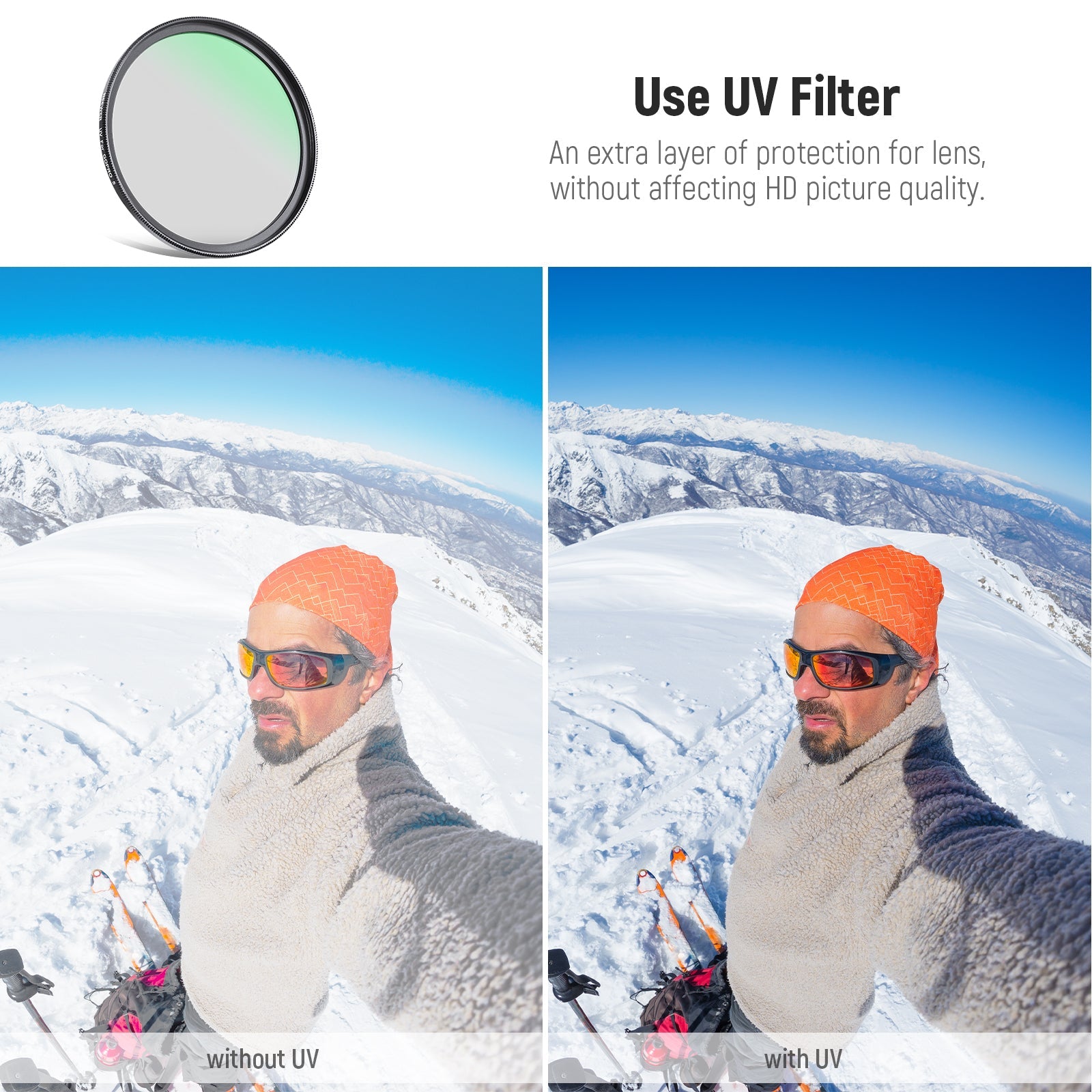 - Multi-Resistant Nano Coated- With the optical class build, the filters are strengthened with 24 layers of Nano coatings, which makes the filters scratch resistant, water repellent, oil proof and dust resistant. The lightweight and ultra thin aluminum frame effectively protects the filters and avoid vignetting