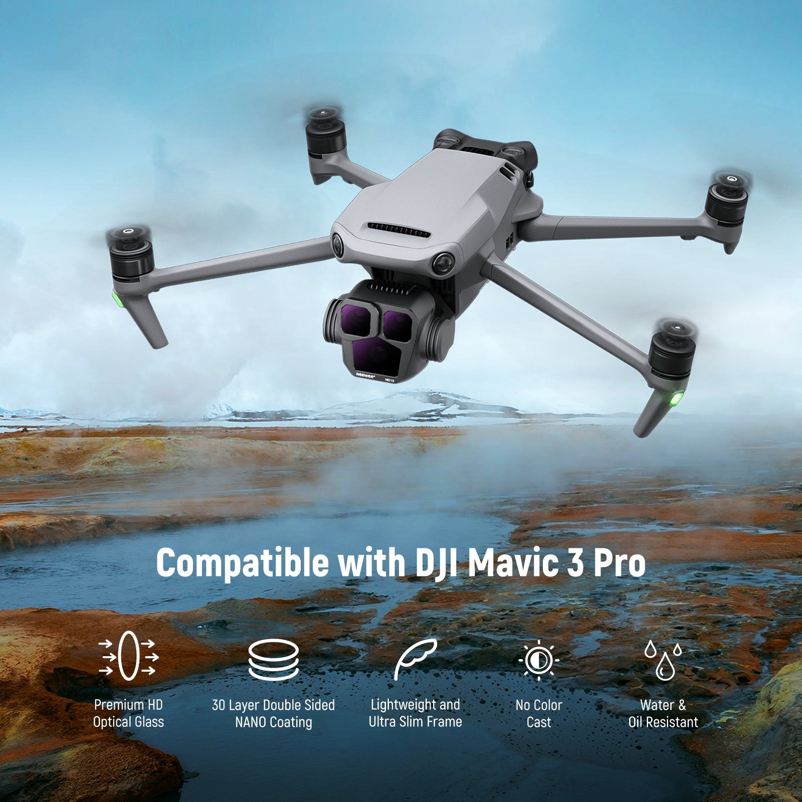 - Dedicated to Mavic 3 Pro/Pro Cine- Introducing the latest must-have ND & CPL filter set designed specifically for the Mavic 3 Pro/Pro Cine's three lens gimbal system - a game changer for all avid drone photographers and videographers. These filters help achieve perfect exposure, reduce glare and reflections, and enhance colors, elevating your aerial shots to the next level