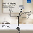 - Magic Arm with Super Clamp- Made of aluminum alloy, the podcast mic boom arm phone stand for desk supports DSLRs, action cameras, smartphones, or microphones up to 1.8 lb, with an anti twist pin for stability. Recommended for use in static situations