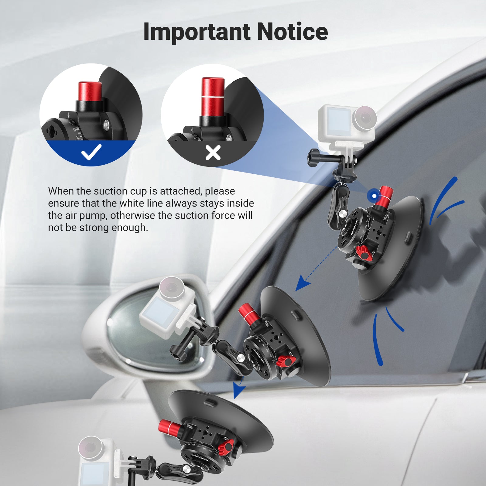 Versatile Suction Cup with Magic Arm- The CA013 accessories kit has a powerful pump activated vacuum suction cup to stick to most surfaces and rotate a mirrorless camera, action camera, and phone holder 360°. Compatible with GoPro Hero 13 12 11 10 9 Black Go Pro Max Insta360 X5 X4 X3 Go 3S Insta 360 Ace Pro DJI Osmo Action 6 5 Pro 4 3 2 Sony Canon Nikon DSLR, etc. An articulating magic arm with two swivel 1/4" ball heads provides flexible mounting positions