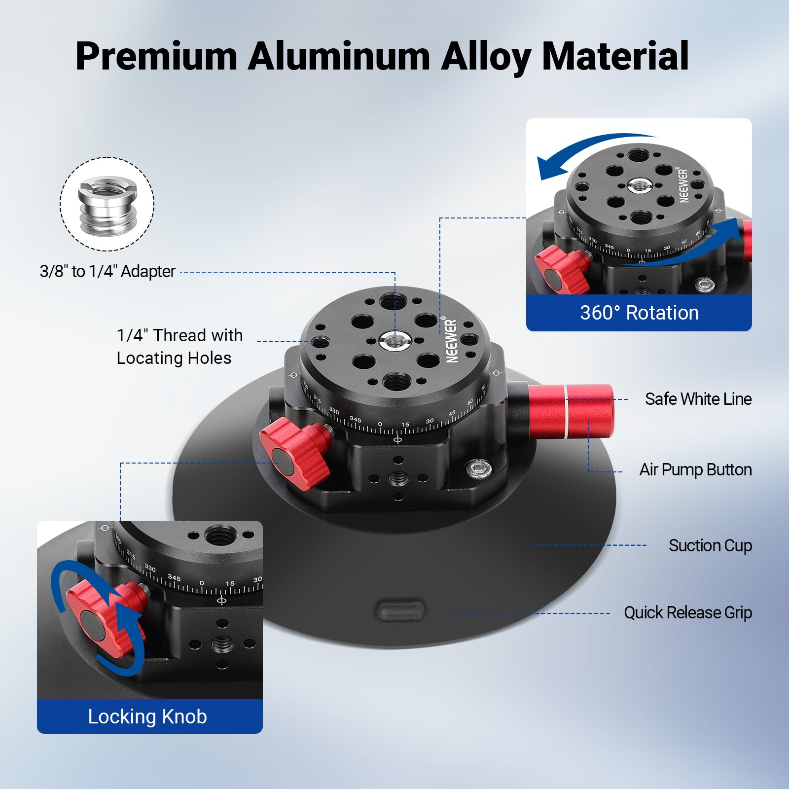 - Premium Construction- Crafted with rigid and corrosion resistant aluminum alloy, the suction cup mount can withstand uncertain outdoor environments. And the silicone rubber cup is durable and easy to clean with water
