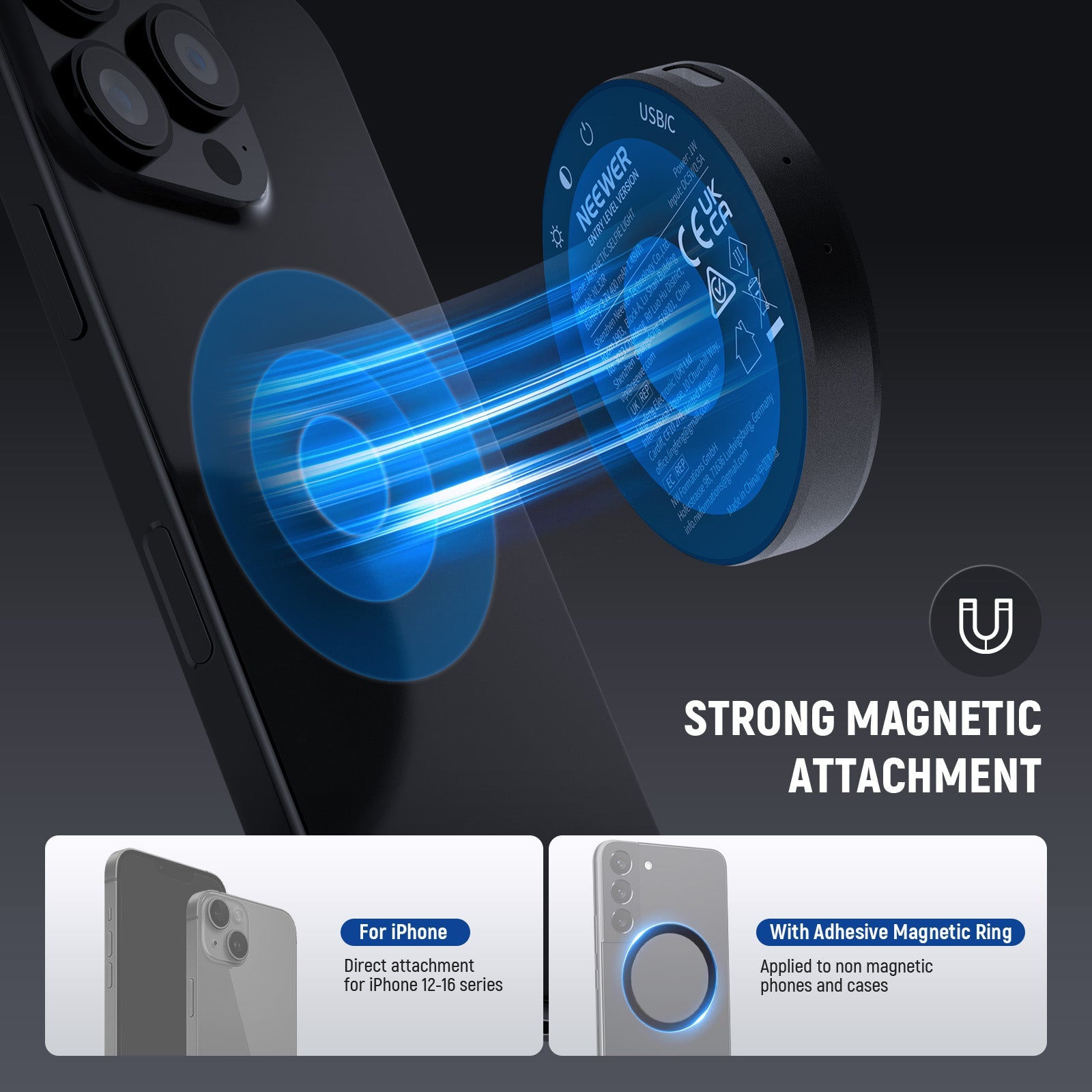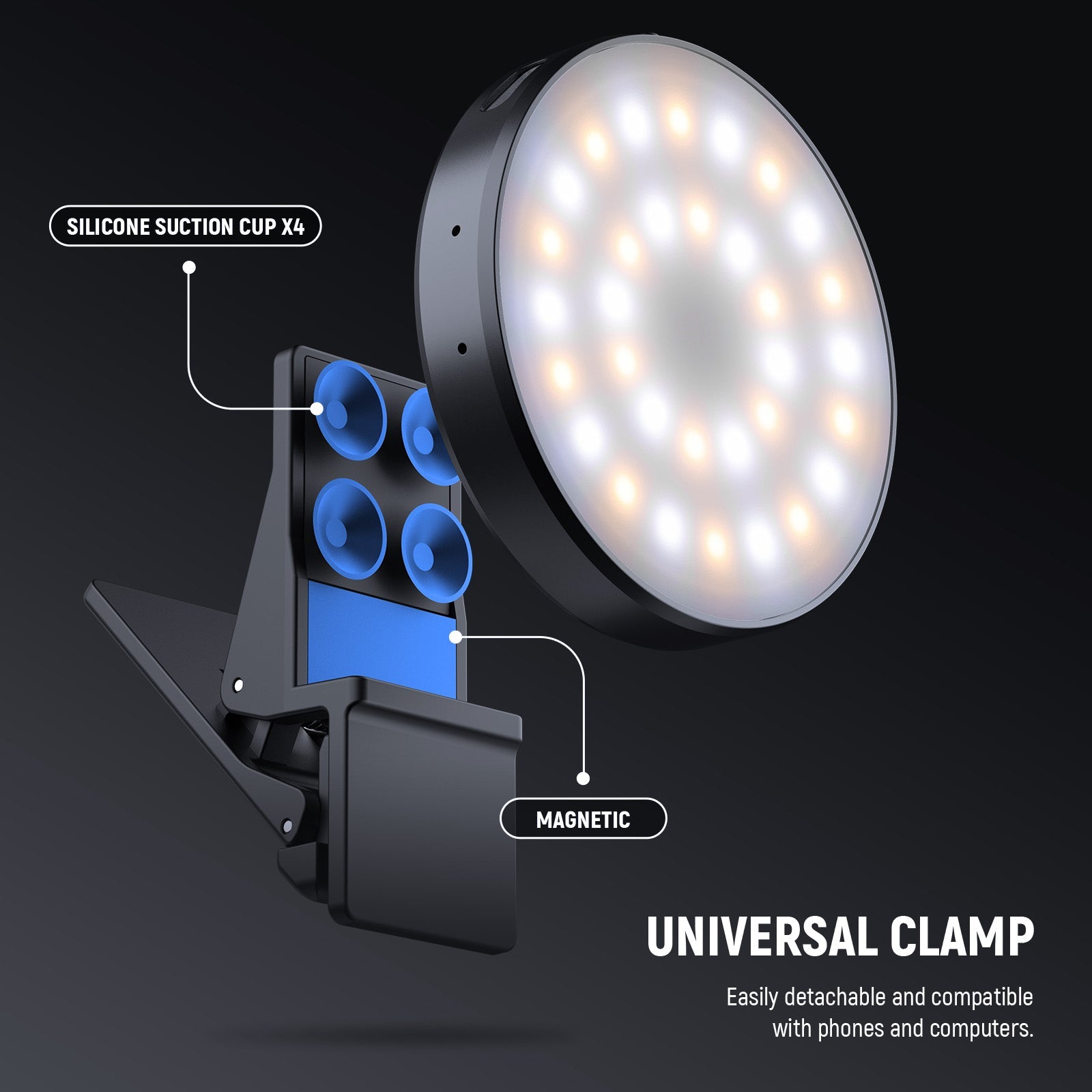 - Magnetic Selfie Light with Clamp- The mini fill ringlight as photography accessories is compatible with MagSafe iPhone 16 Pro Max Plus 15/14/13/12 iPad Pro and other magnetic devices. For nonmagnetic devices, use the included adhesive magnetic clip or mounting clip to mount it on Android phone for overhead filming recording or desk laptop for video calls, compatible with Samsung Galaxy S25 S24 S23 Ultra, etc. The clip allows dual direction mounting for both front and rear camera fill lighting