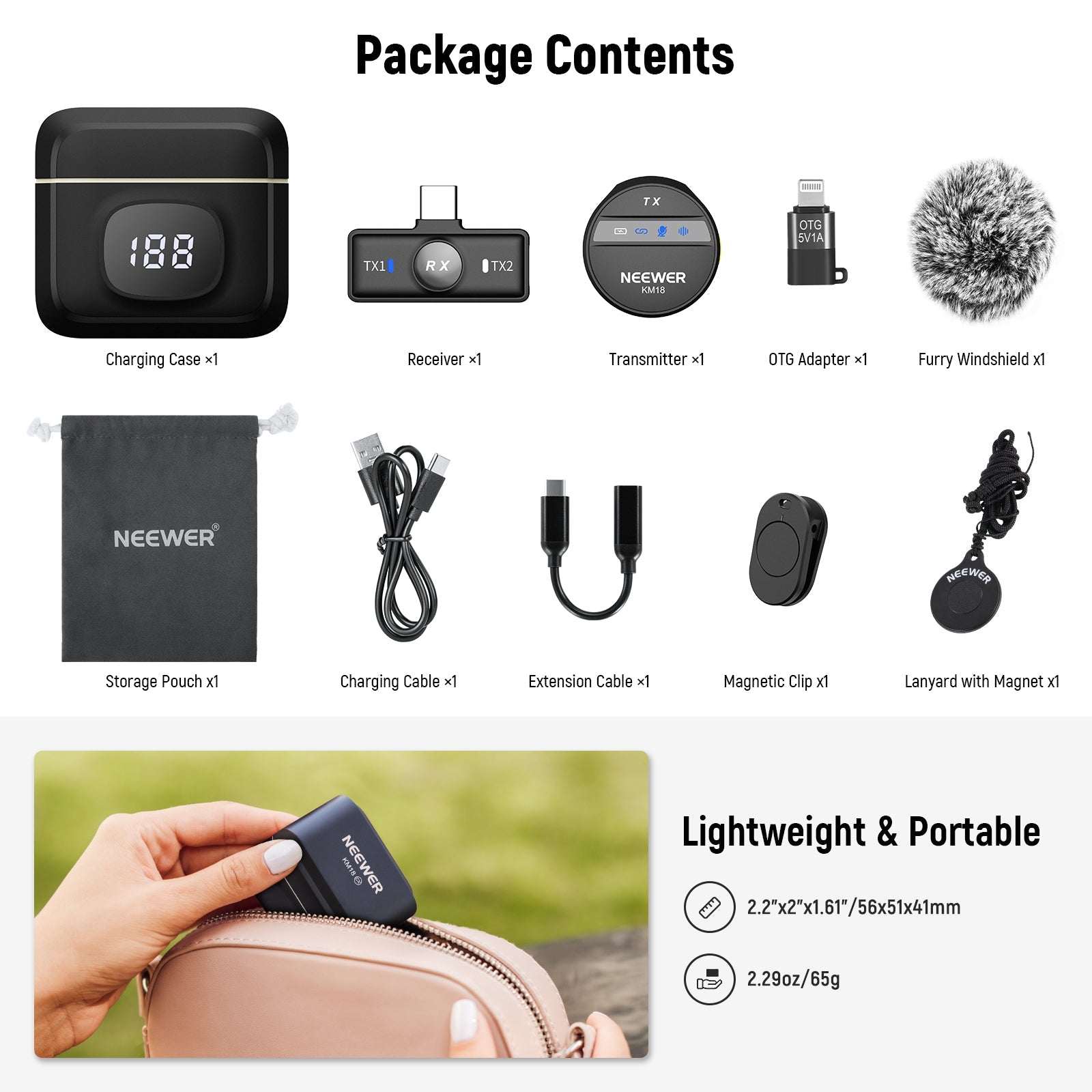 NEEWER KM18 Wireless Lavalier Microphone for iPhone/USB C