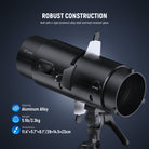 - Advanced Optical Spotlight Snoot- With precise optical aspheric lenses and advanced multicoating technology, this spotlight offers 98% light transmission for boosted brightness and efficient light concentration. Equipped with a 19° projection lens, it casts clear light spots with uniform brightness and sharp edges. When paired with the NEEWER CB300B, it increases illuminance by 6.9x at 1m