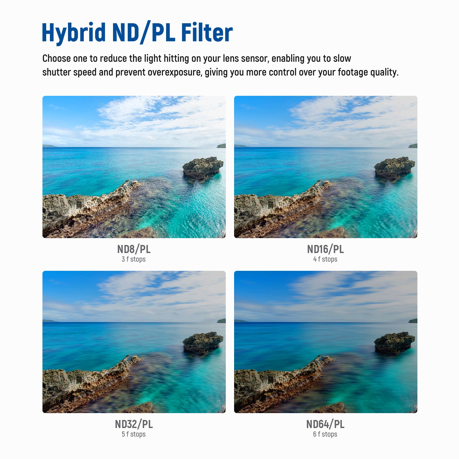 - Separate protective filter cases are included to safely store each ND/PL filter.