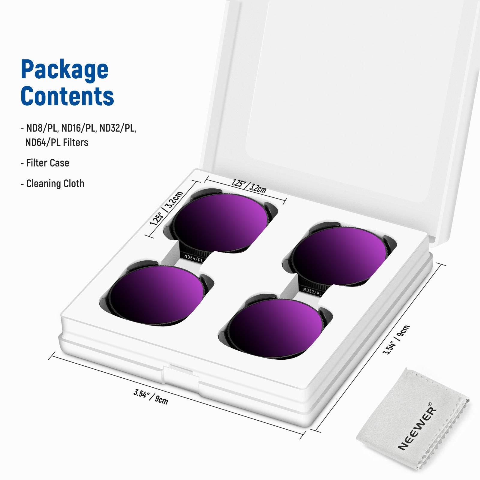 NEEWER 4 Pack ND/CPL Filter Set compatible with GoPro Hero 12/11/10/9