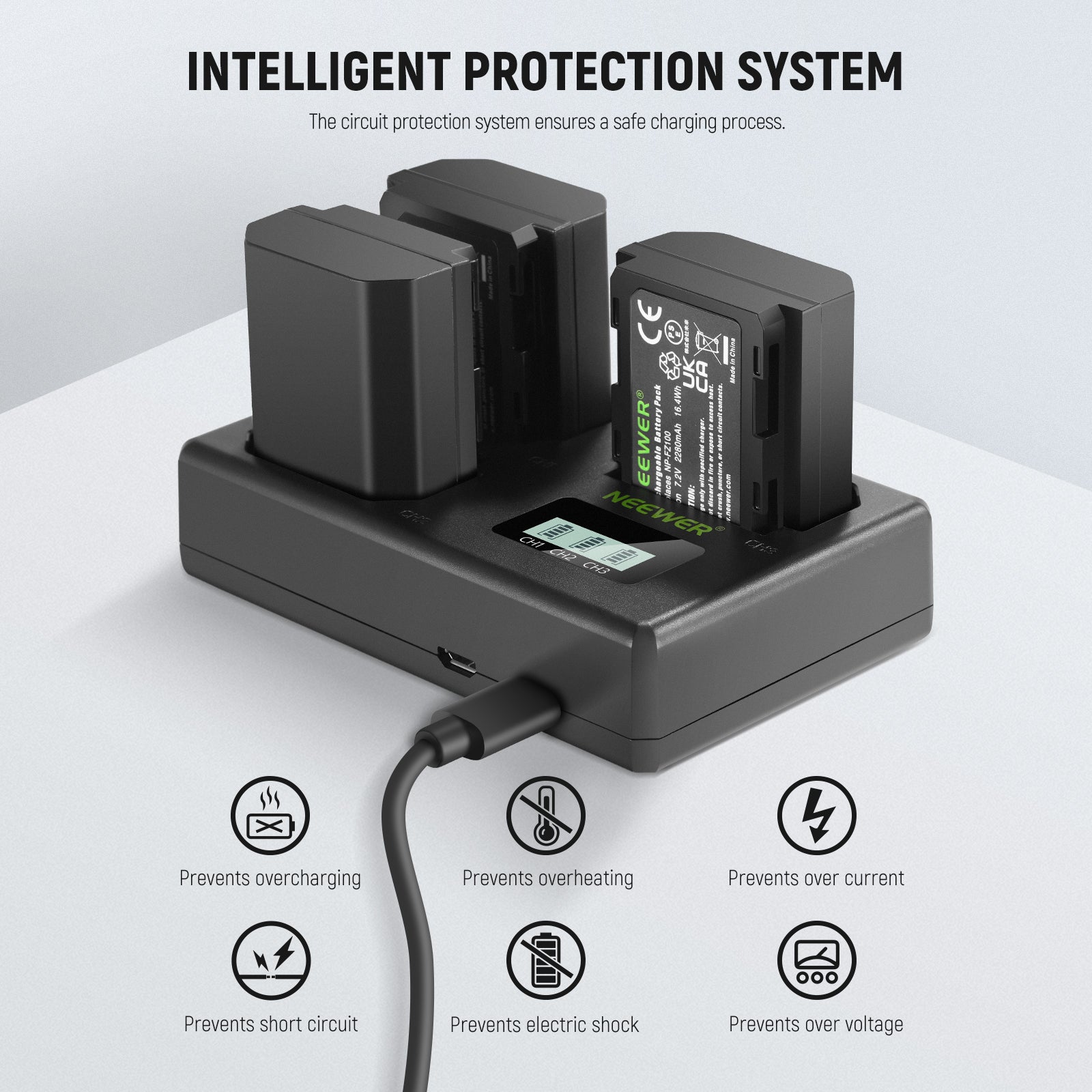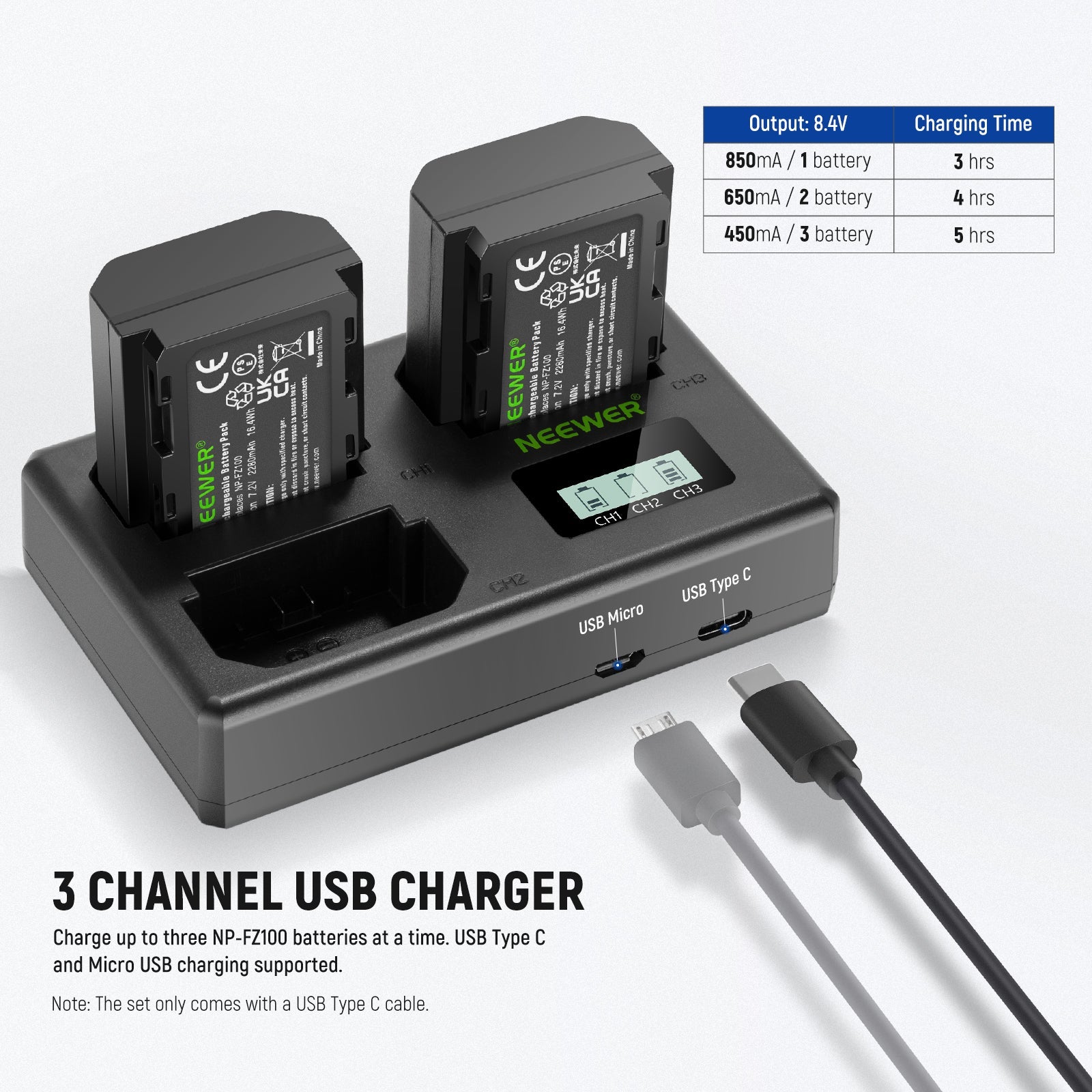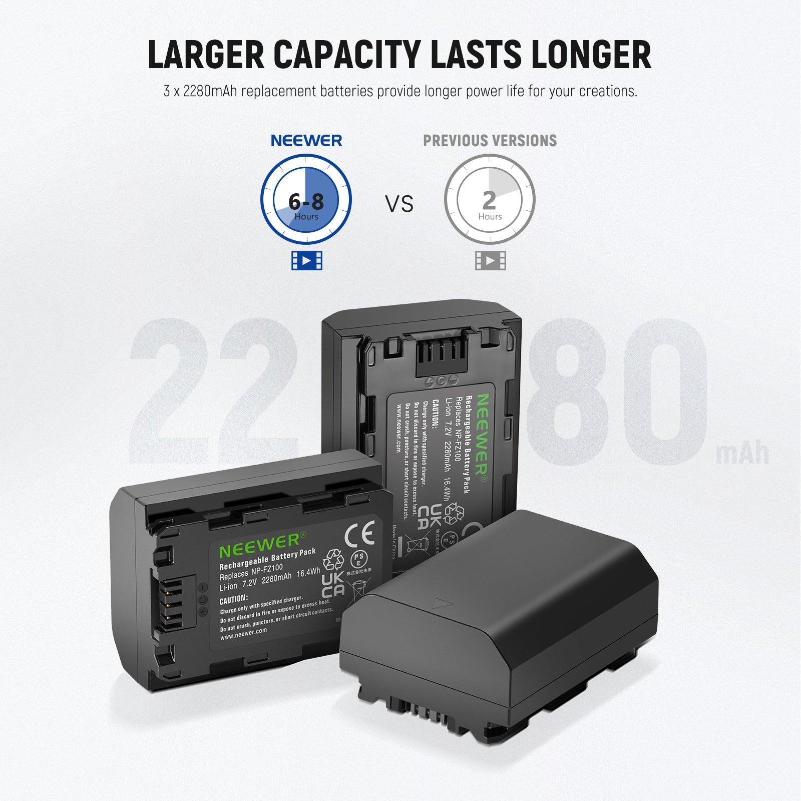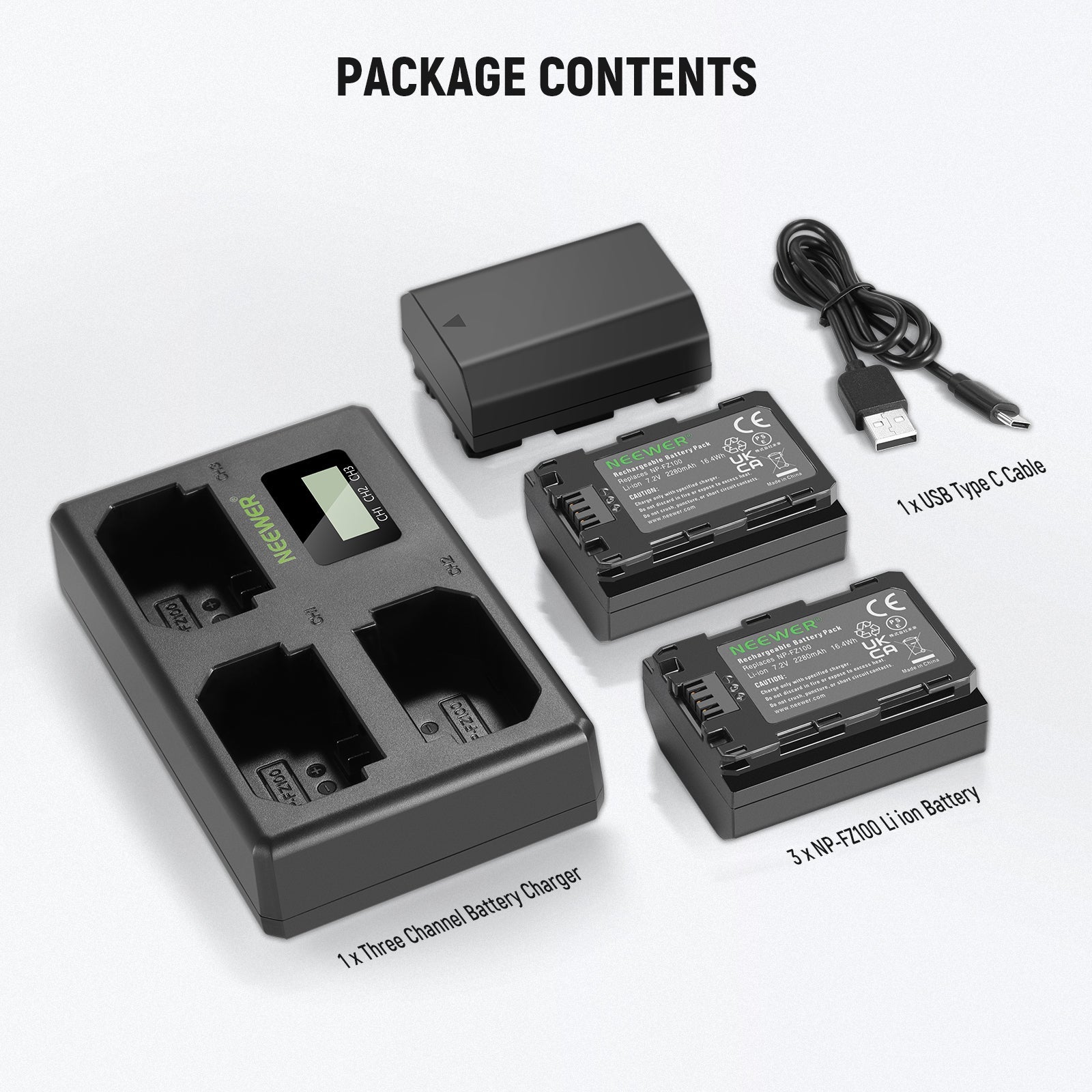 NEEWER 3 Pack NP-FZ100 Sony Replacement Battery and Charger Set