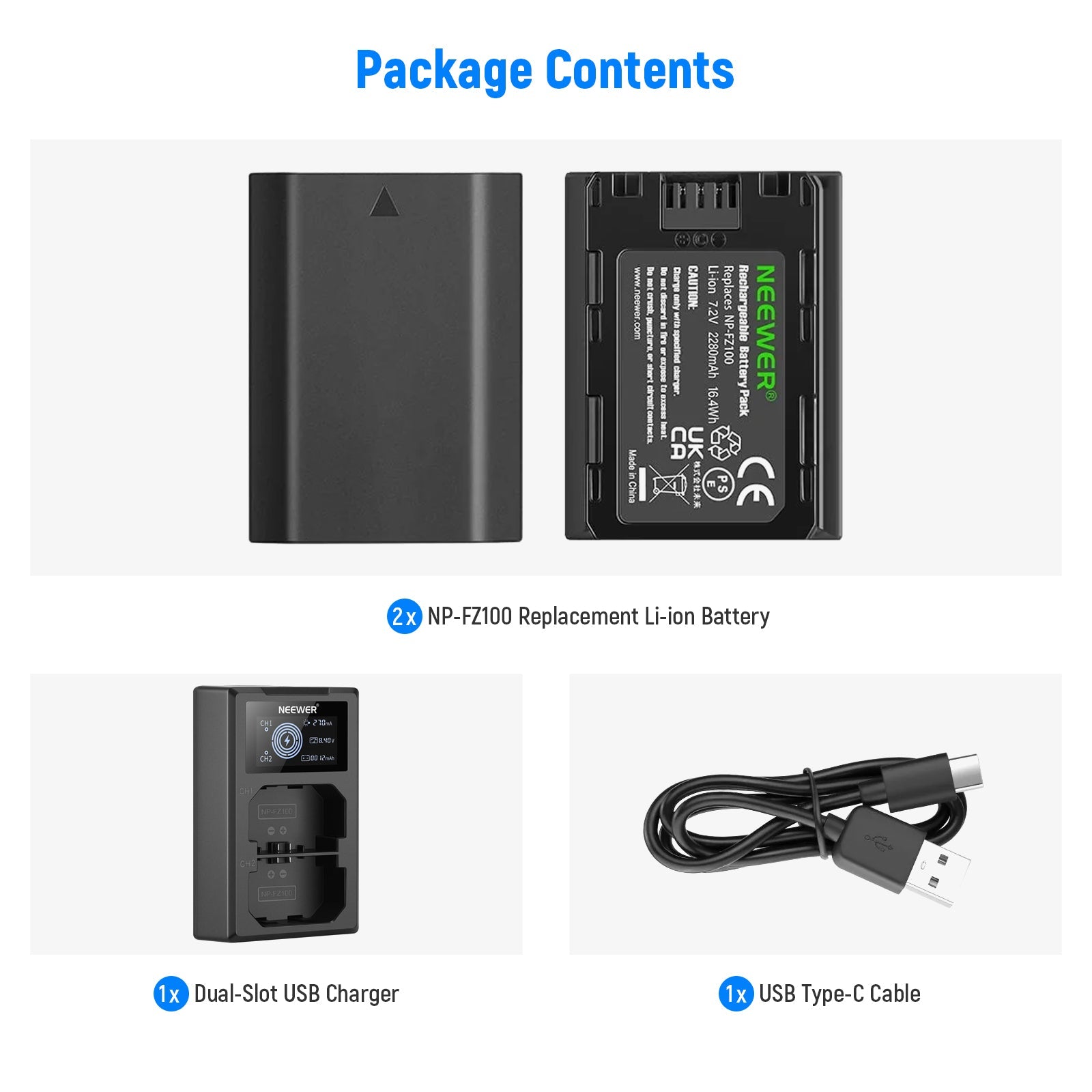 NEEWER 2 Pack NP-FZ100 Sony Replacement Battery Charger Set