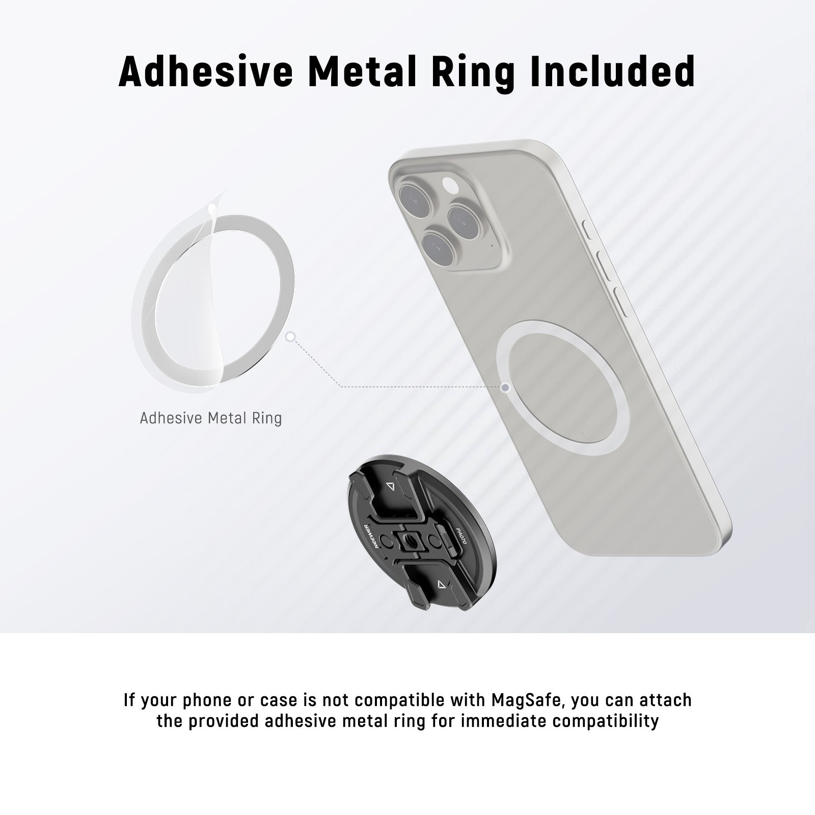 - Adhesive Metal Ring Included- If your phone or case is not compatible with MagSafe, you can stick the provided adhesive metal ring on its back and enjoy strong magnetic attachment soon