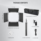 - Stable and Flexible Stand Support- Two tripod light stands in the studio photography kit provide stable support for the LED video lights, adjustable height from 3'/92cm to 6.6'/200cm. A U shaped bracket holds the light while connecting it to the stand. Capable of tilting 180° on the bracket, the portable 660 PRO II RGB light equipment allows for flexible lighting angles. The four way barn doors help modify the beam angle, and a removable diffuser brings a delicate and stunning lighting effect