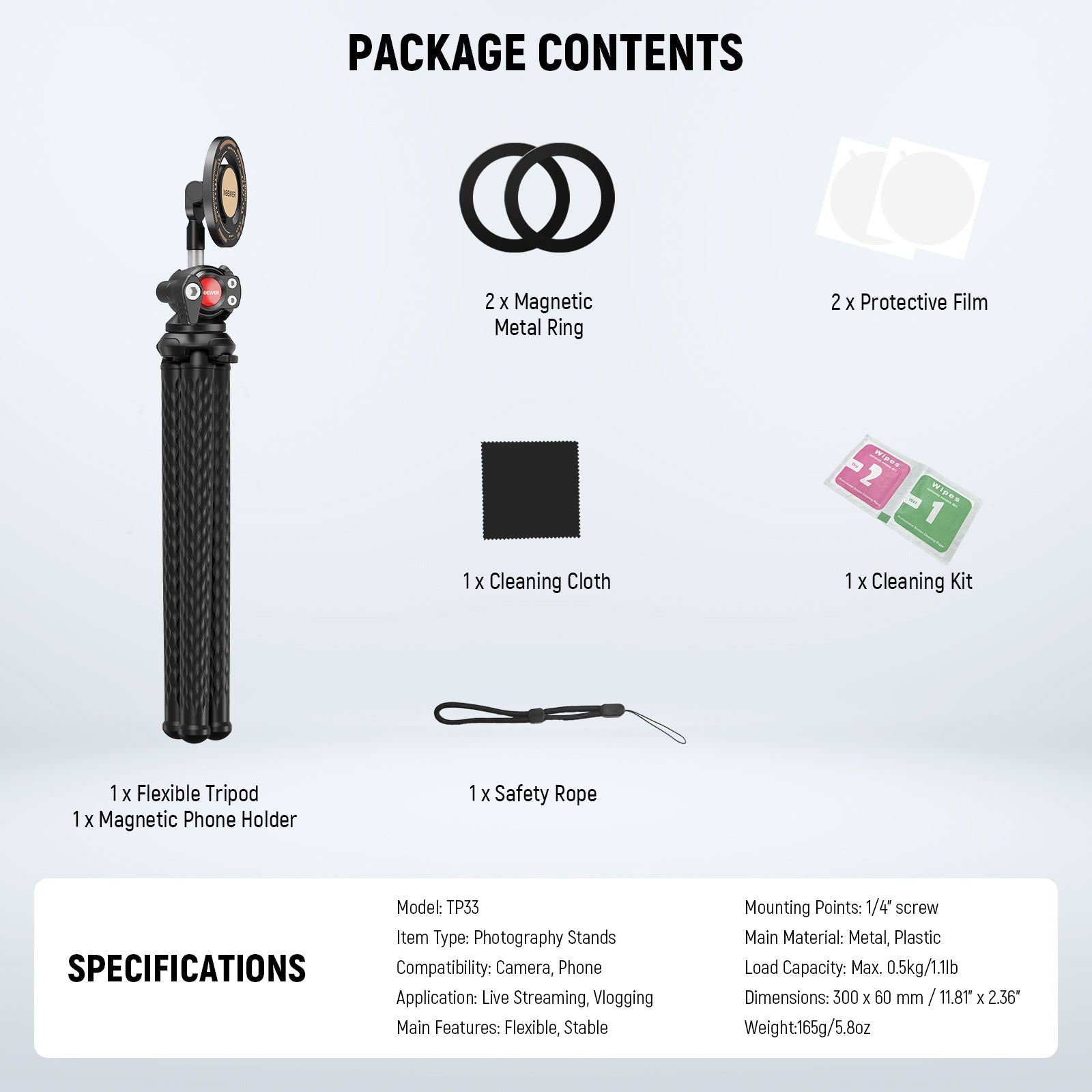 NEEWER TP33 Magnetic Flexible Phone Tripod with Ball Head & Metal Ring