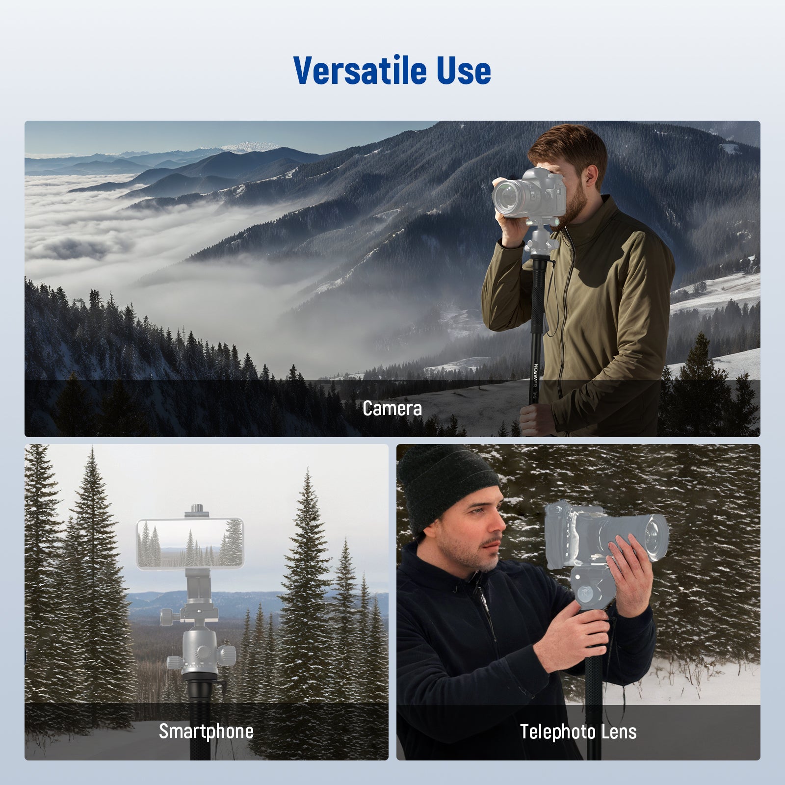 - Rubber Grip & Wrist Strap- The rubber grip is designed to prevent slipping, ensuring a firm hold in any conditions and lasting longer than foam grips, which can degrade over time. Additionally, the monopod includes a removable nylon wrist strap for added security, keeping your equipment safe while capturing the shot