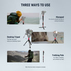 - Adjustable Multi Angle Monopod Base- With a detachable and adjustable tripod base, the monopod supports 360° swivel and 45° tilt, and can be positioned horizontally or vertically between 90°. With a handy vertical locking knob, the feet support can hold steady on uneven ground, ideal for low angle shots, sports photography, weddings, and urban landscapes. The tripod feet alone can also create a desktop tripod