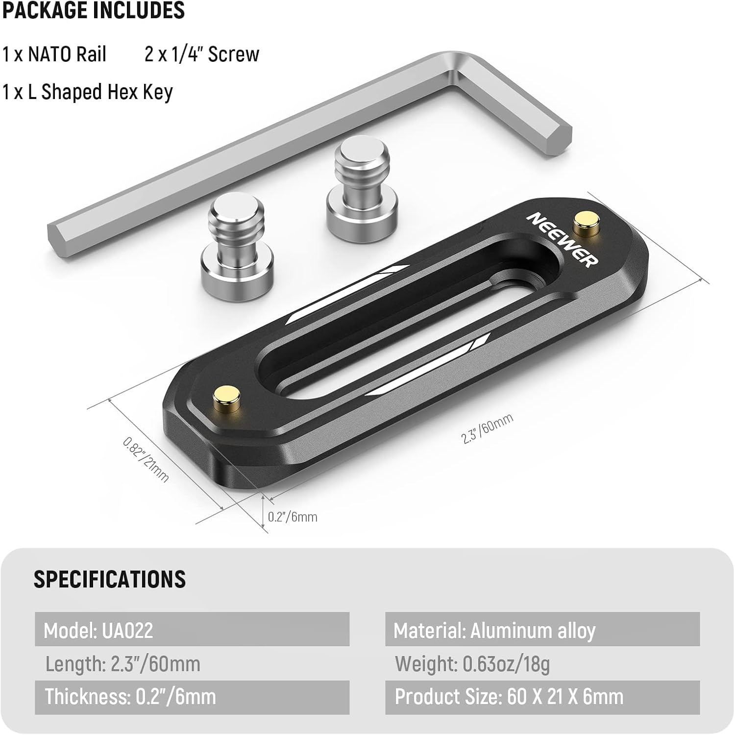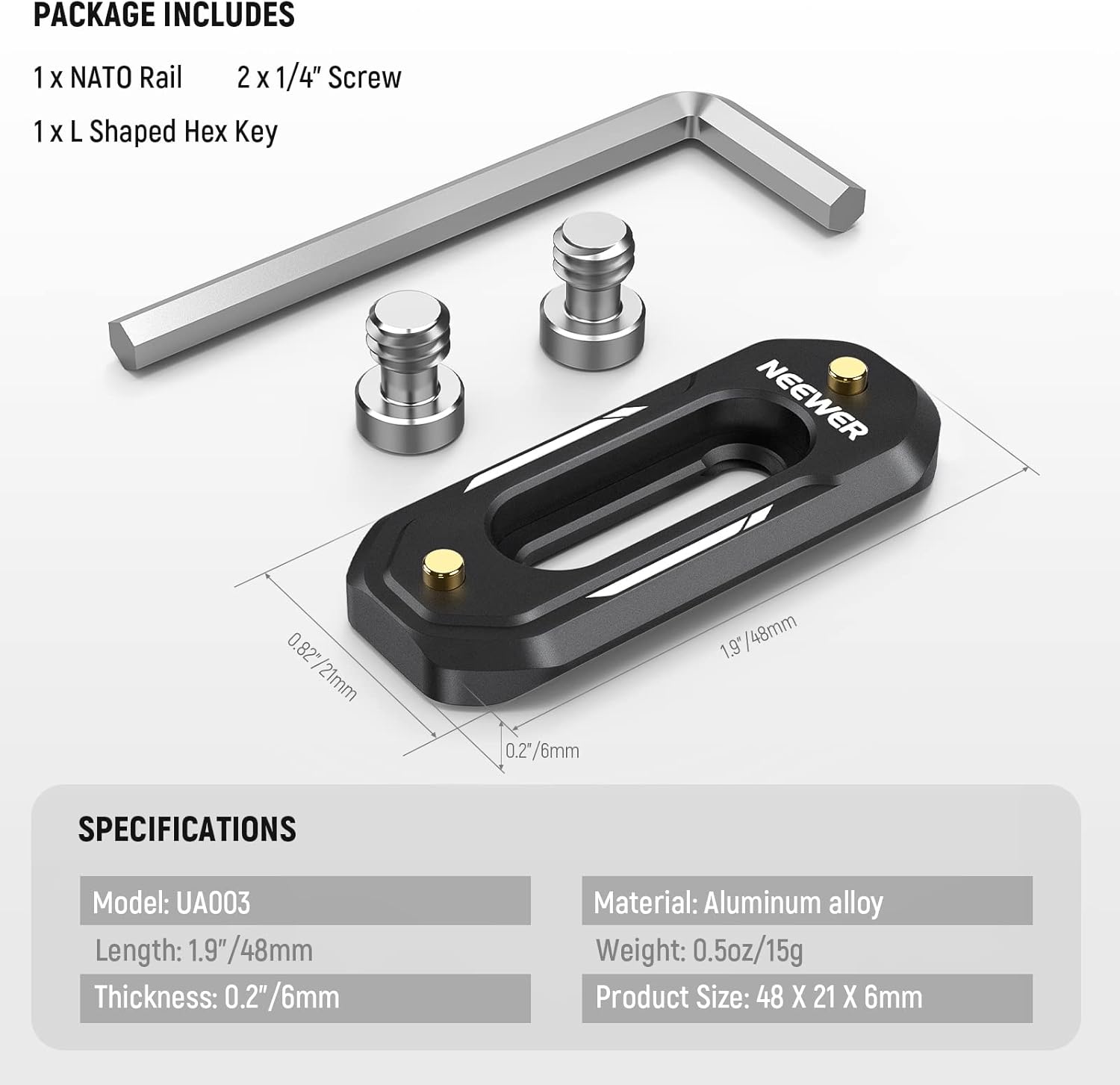 - Wide Compatibility- This quick release NATO rail can attach to a camera cage and secure NATO compatible accessories like handles, articulating arms, clamps, and monitor mounts