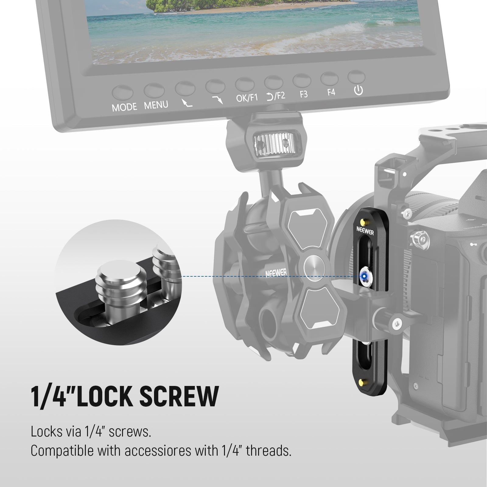 - 1/4" Screw Installation- Mount the rail on your camera cage with two 1/4" screws for exceptional security and stability