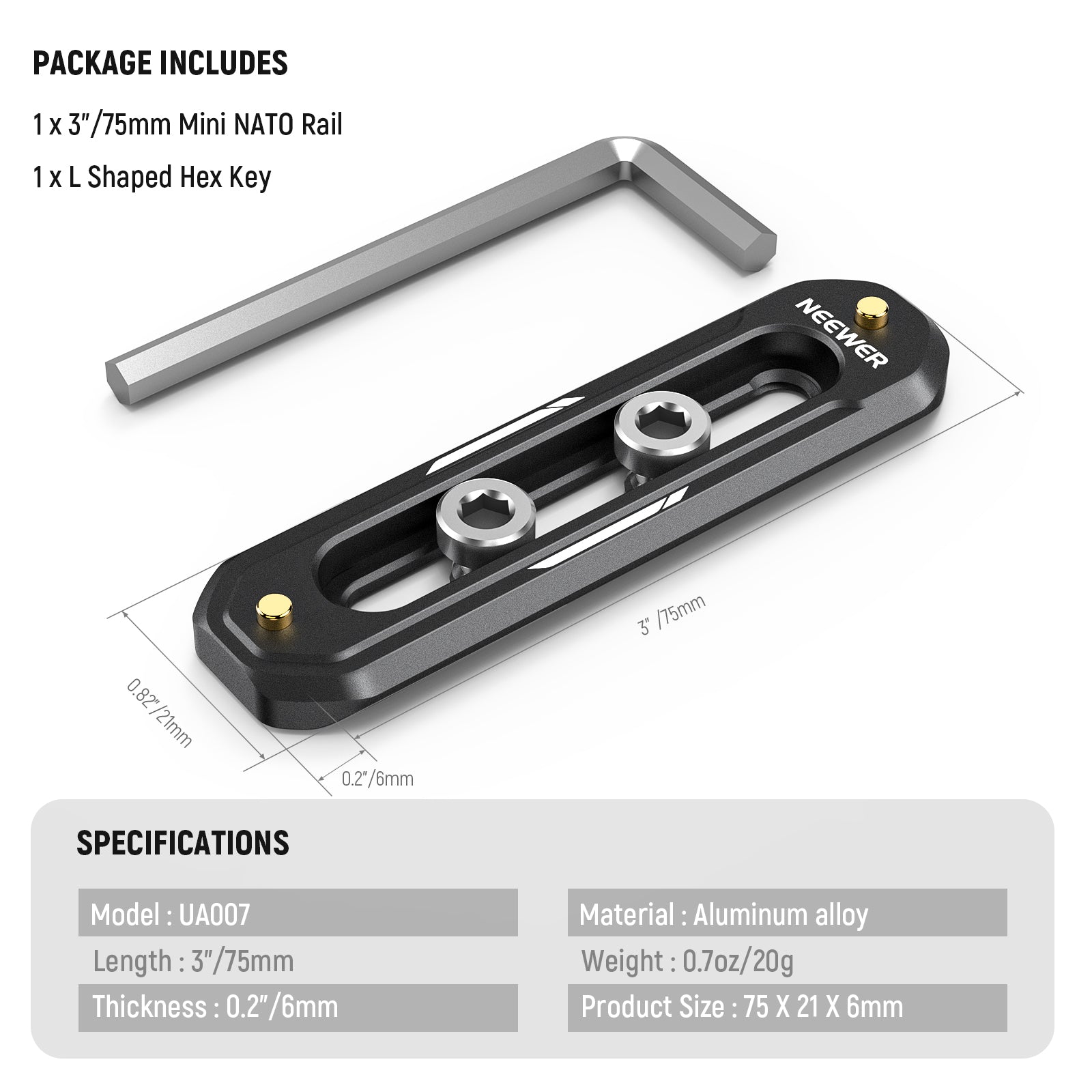- Small & Lightweight- 2" (48mm)/3" (75mm) in length, 0.2" (6mm) in thickness, and 0.5oz (15g)/0.7oz (20g) in weight, this rail is lightweight, thin, and easily portable
