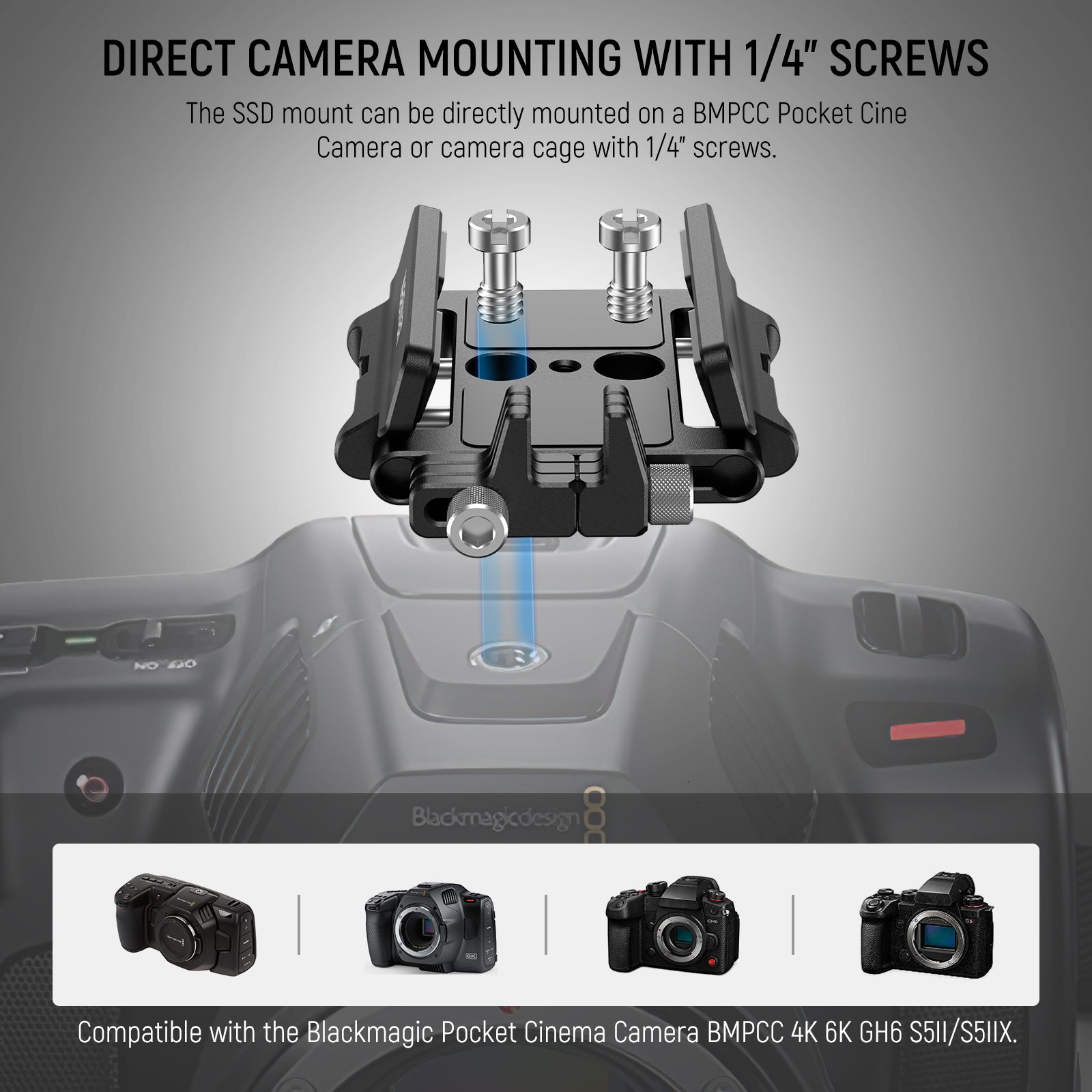 - Flexible Mounting Positions- The included detachable cold shoe adapter can be connected to the SSD Clamp base or a side via the M4 screw inside the cold shoe adapter, allowing the holder to be installed in flat or vertical positions on the code shoe mount of a camera cage or a top handle. Also compatible with iPhone 16 15 Pro Max Plus phone cages (NEEWER PA023K PA024K), compatible with Panasonic S5 II series camera cage, enabling access to the latest external SSD recording features