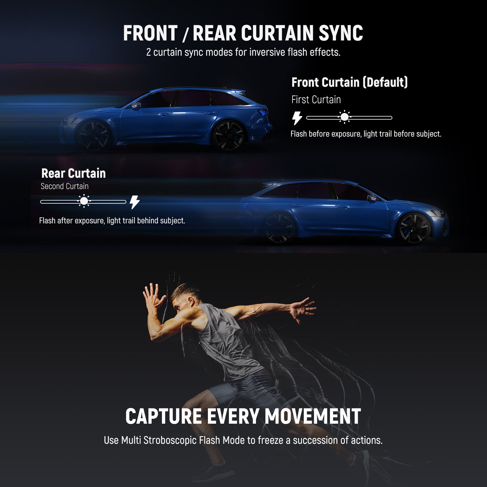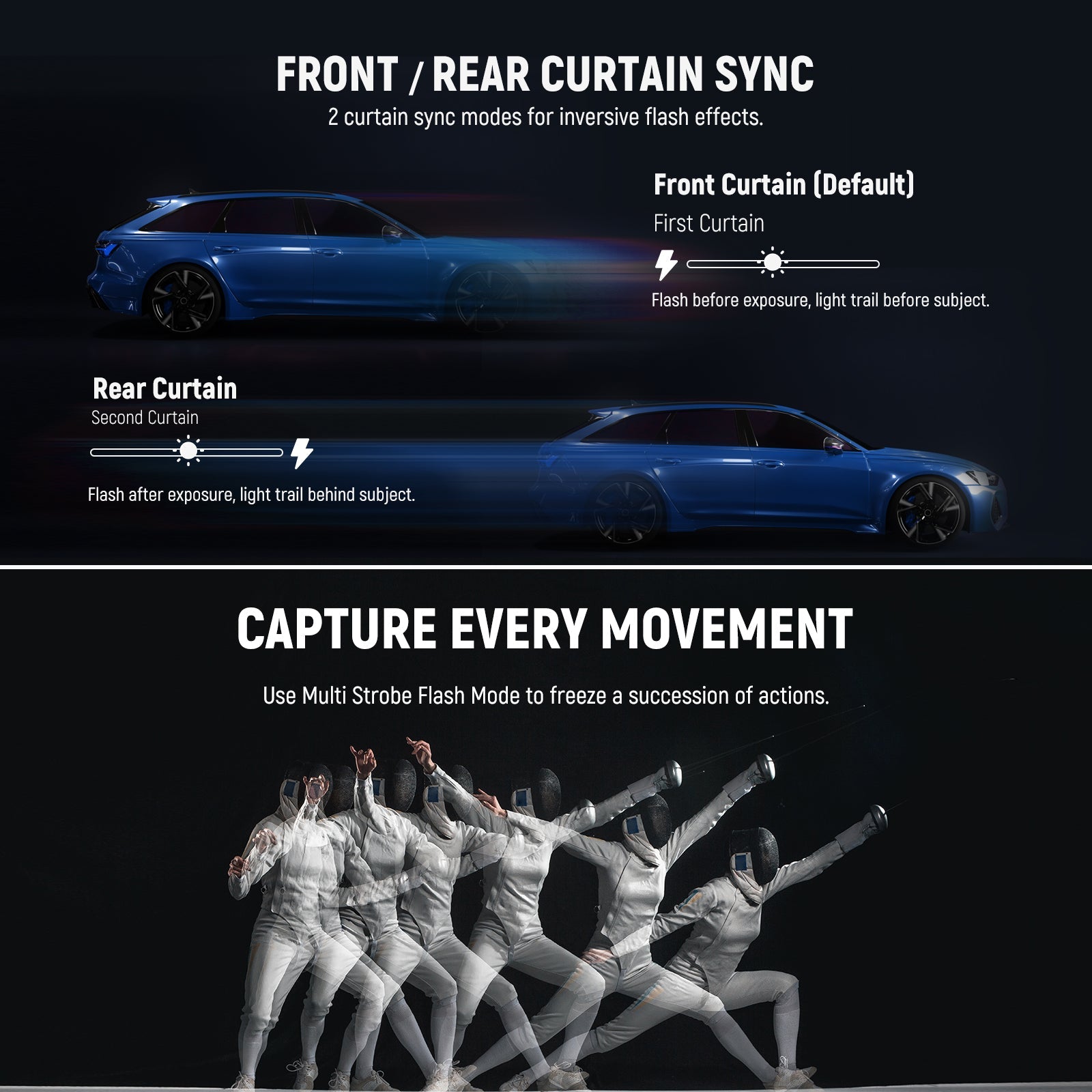 - Sync Method: High speed sync (HSS, up to 1/8000s), front curtain, rear curtain
