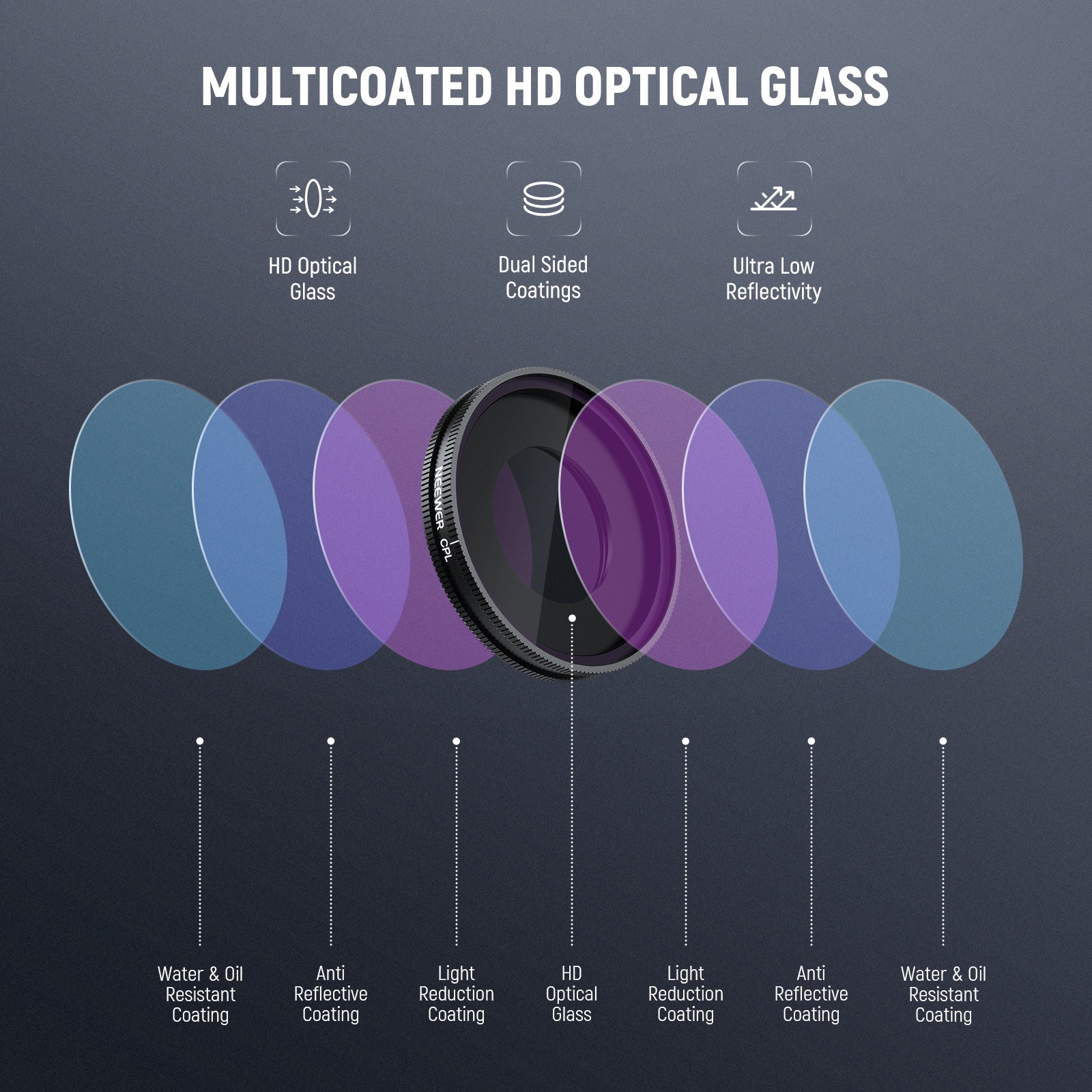 - Minimal Glare, Rich Color- Rotate the adjustable CPL filter to reduce glare and reflections from water, glass, and other nonmetallic surfaces while enhancing contrast and saturation for a vibrant color rendition