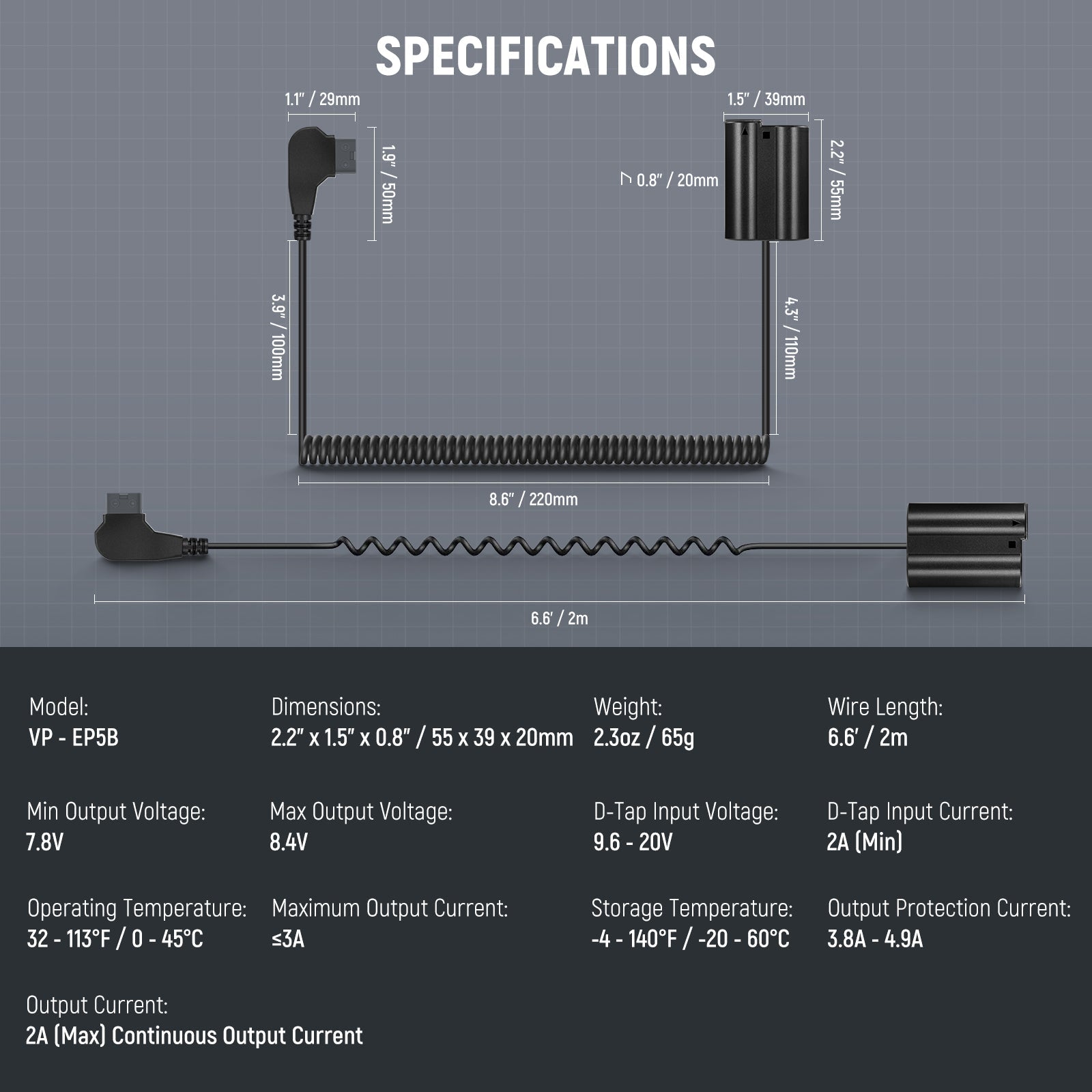 NEEWER VP-EP5B EN-EL15 to D Tap Dummy Battery for Nikon