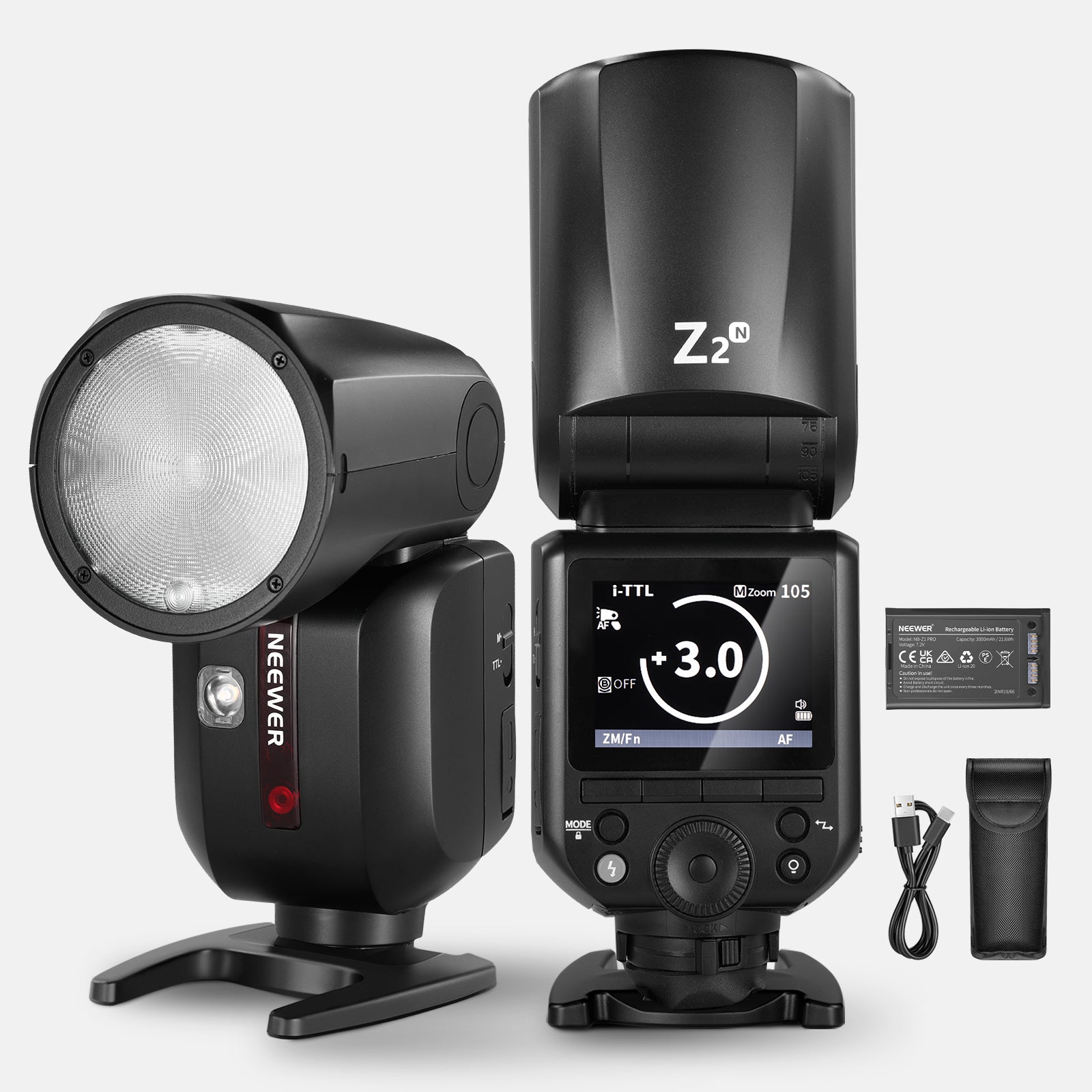 NEEWER Z2 3000mAh Battery TTL Round Head Flash Speedlite for Canon/Nikon/Sony/Fujifilm