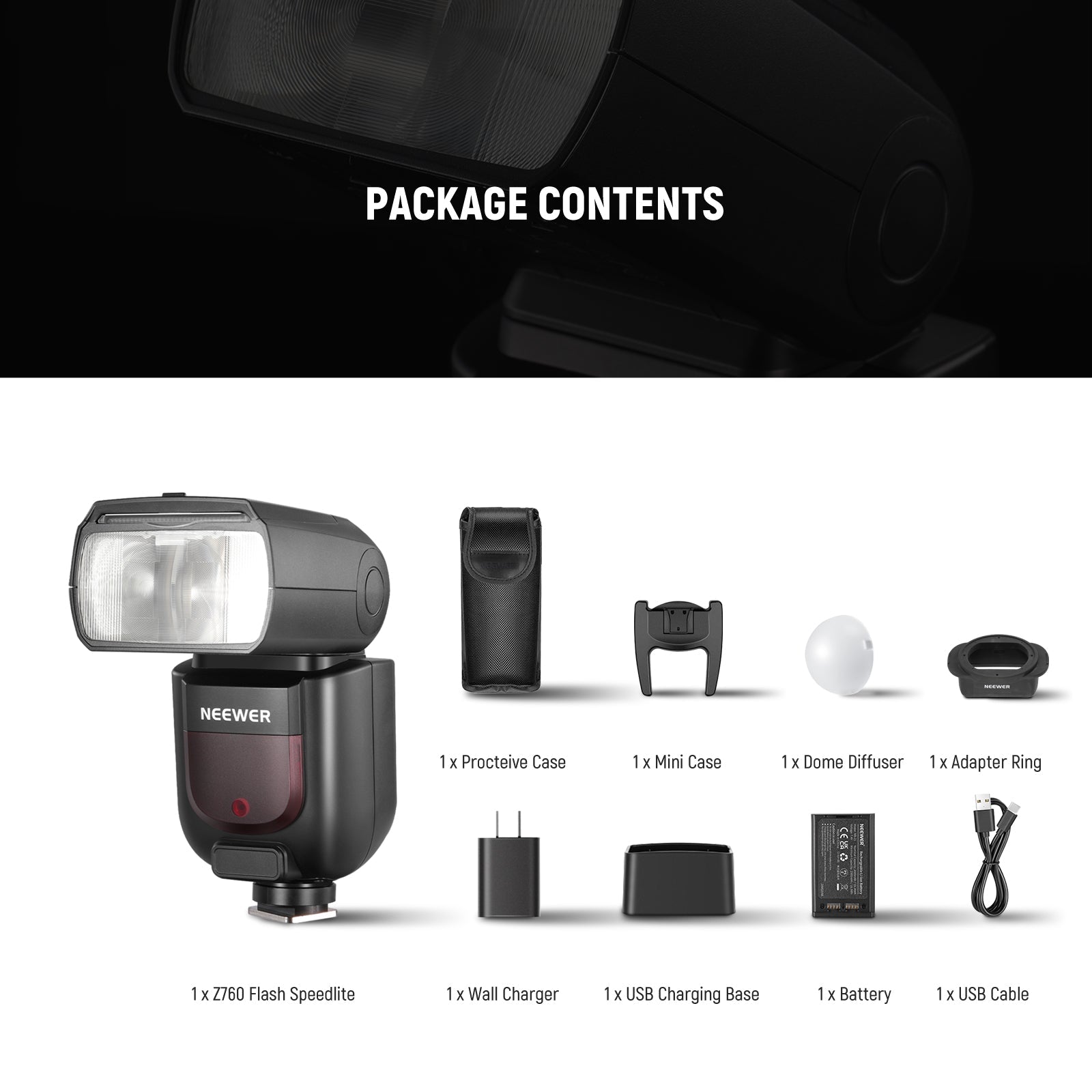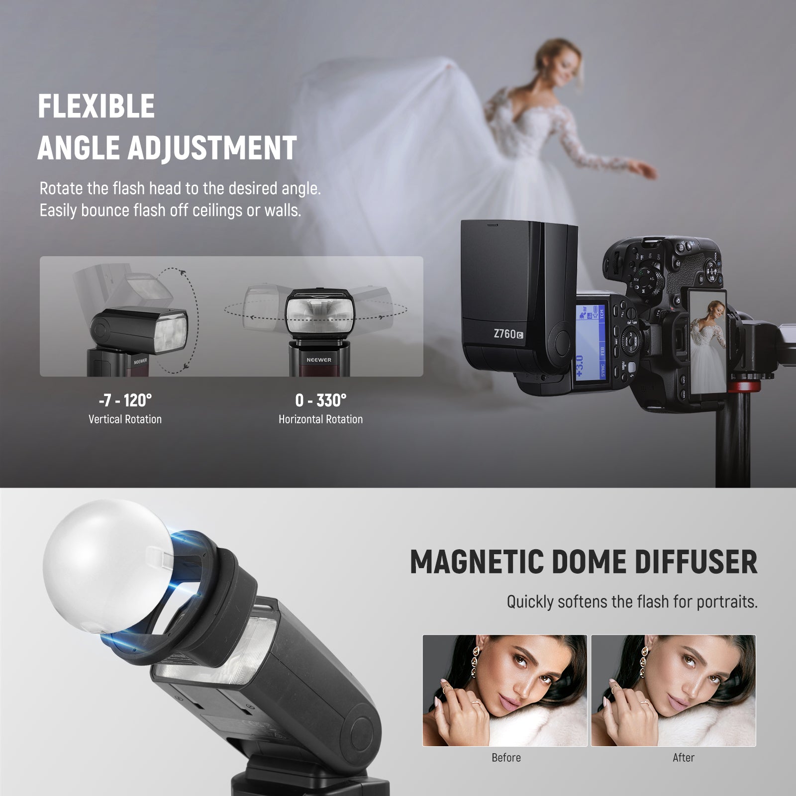 NEEWER Z760 GN60 TTL HSS Flash Speedlite Kit with Dome Diffuser